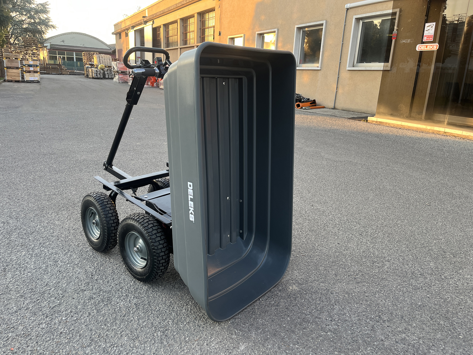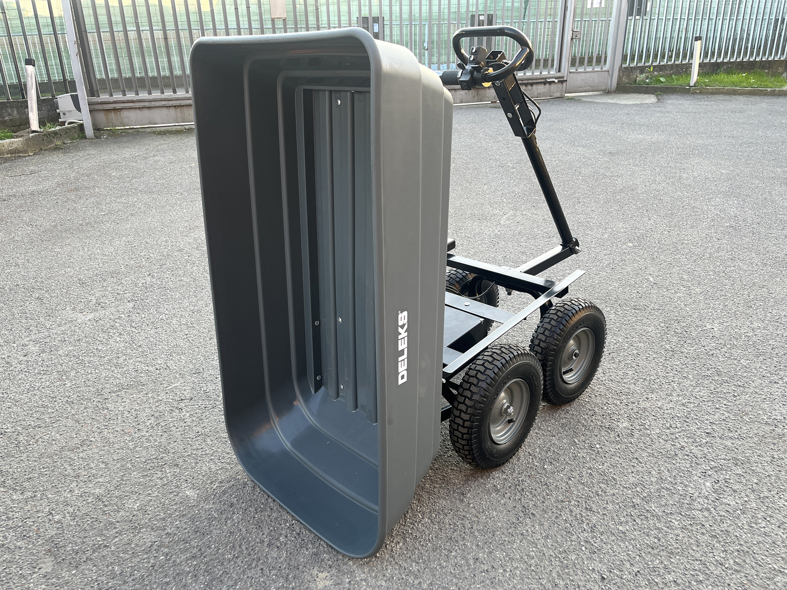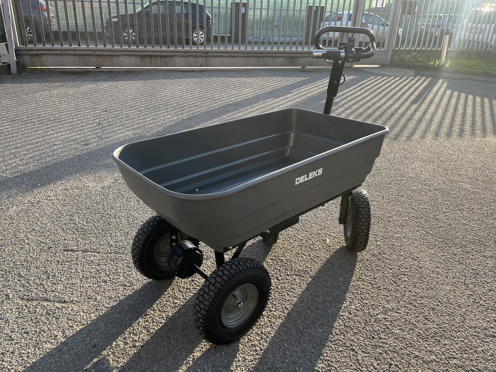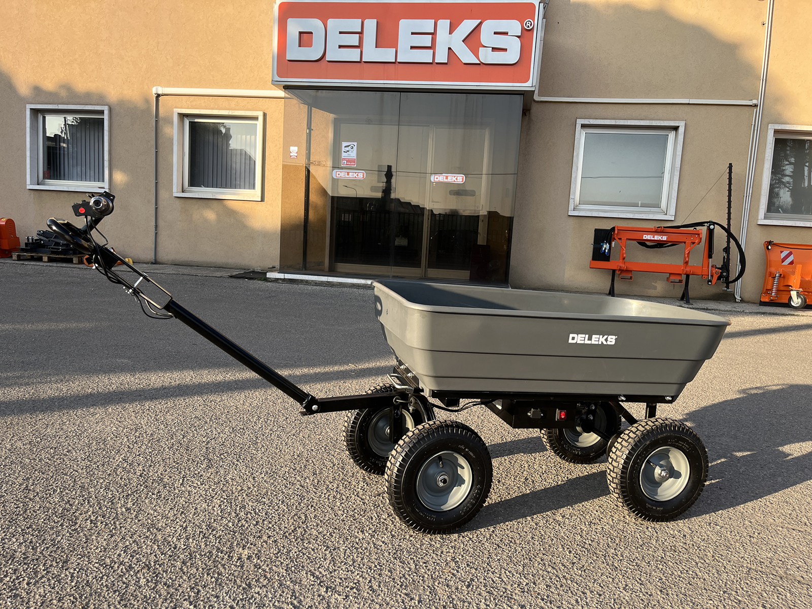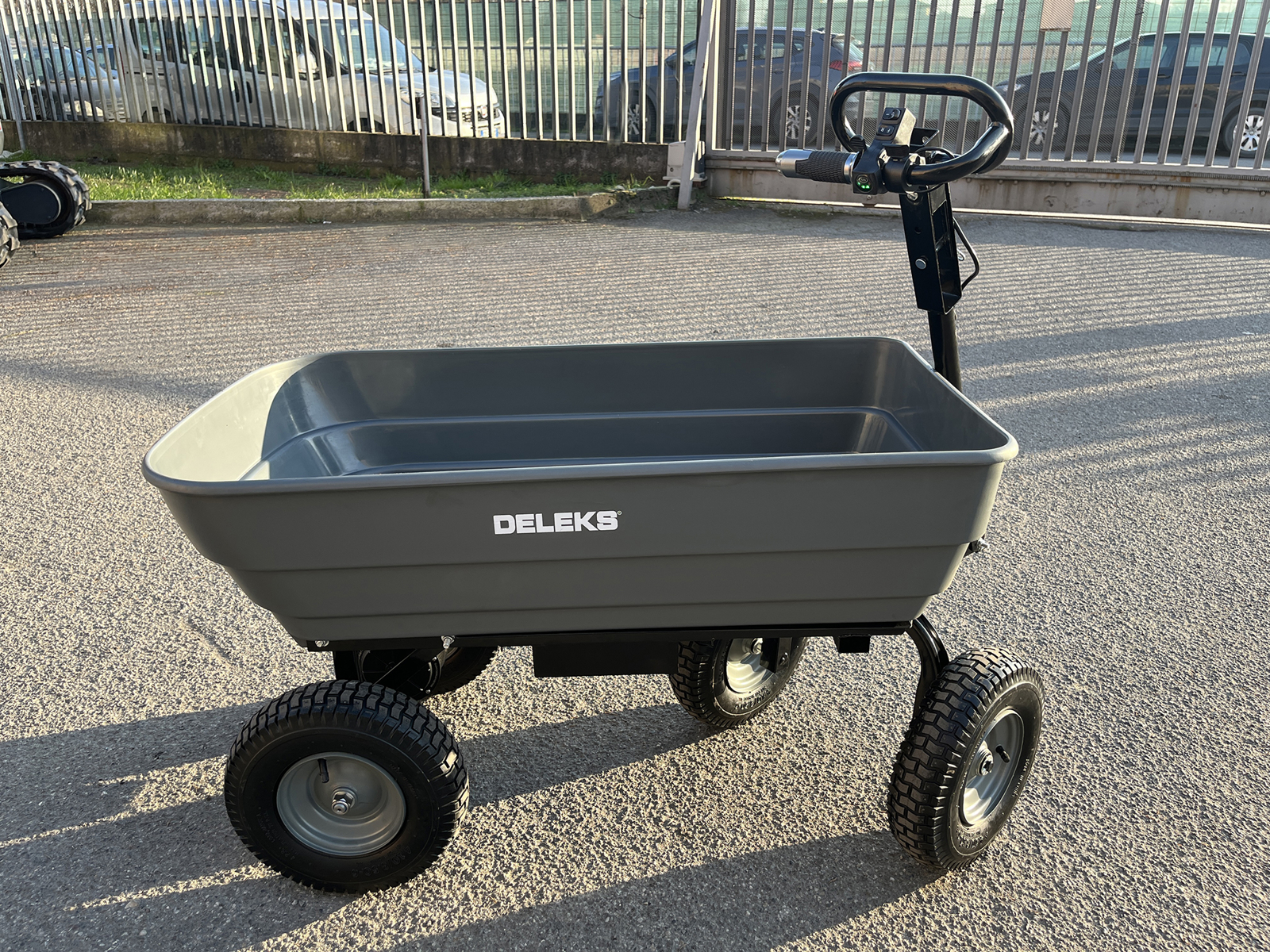 DELEKS® XE160 - 24V Elektrowagen, Elektro-Karre, E-Wagen, E-Transporter, E-Bollerwagen, Kunststoff Kippmulde, Tragfähigkeit 160 kg.