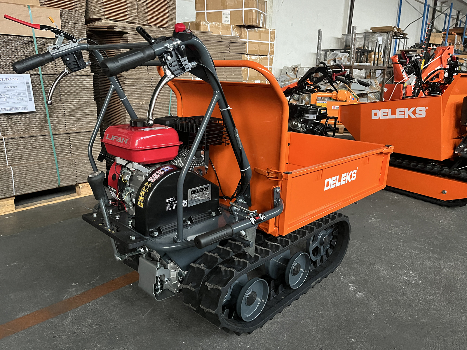 DELEKS® MD-500FL Mini-Raupenkipper / Mini track dumper, mit Lifan-Motor 6.5 Ps und Gummiketten.