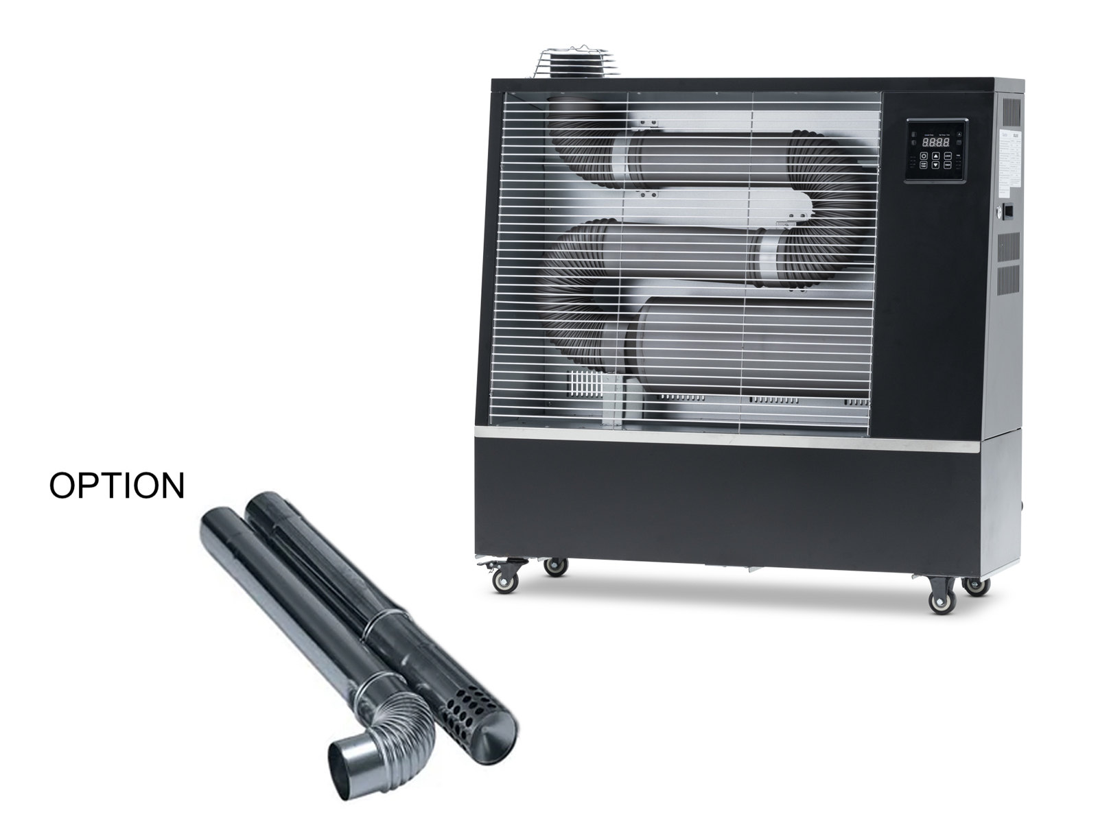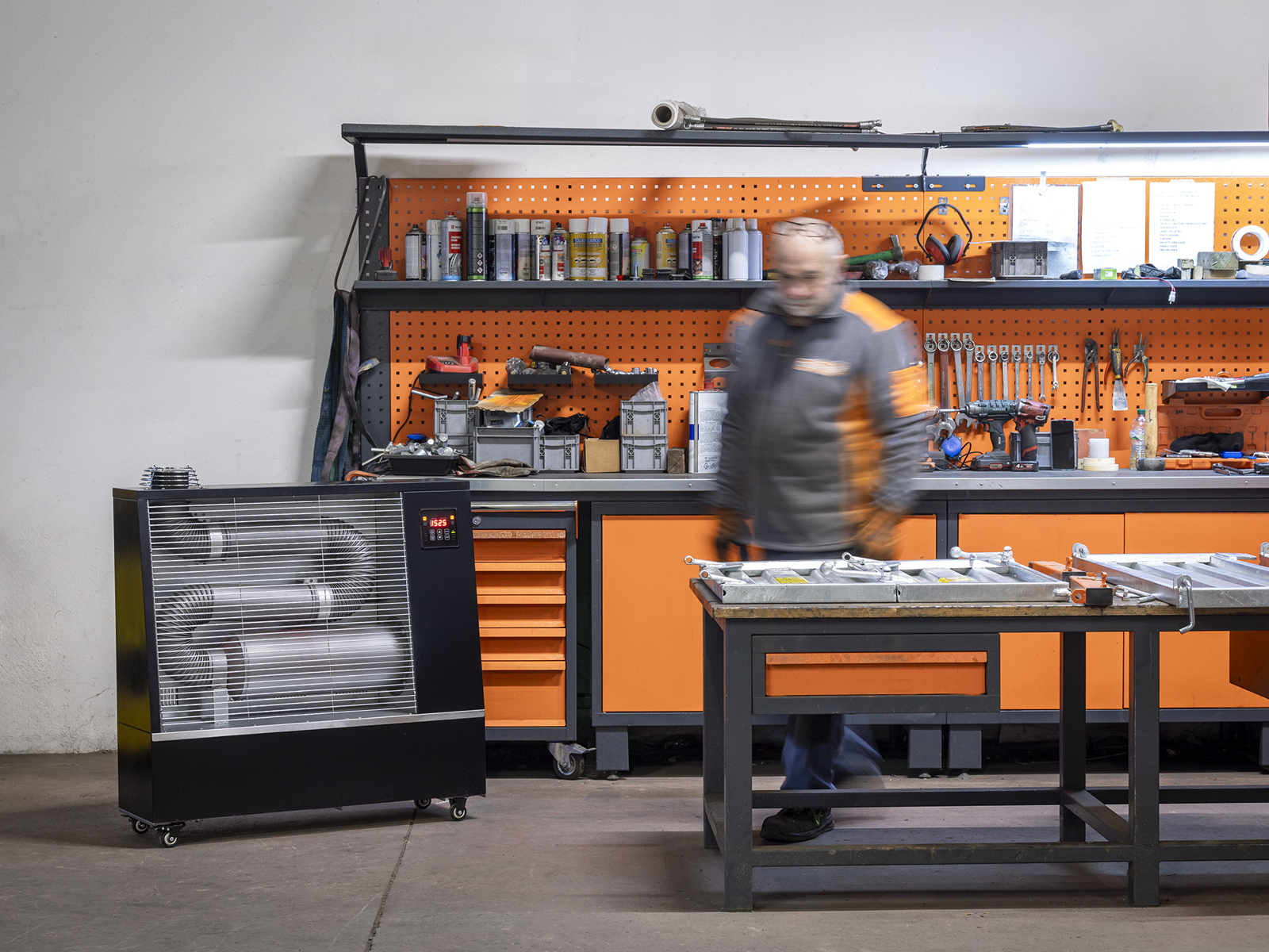 Innovatives Heizsystem für belüftete, geschlossene Räume ( Werkstätten, Gewerbe, Industrie, Landwirtschaft, Lager, Turnhallen) und Außenbereiche wie Gewächshäuser, Terrassen, Baustellen, etc.