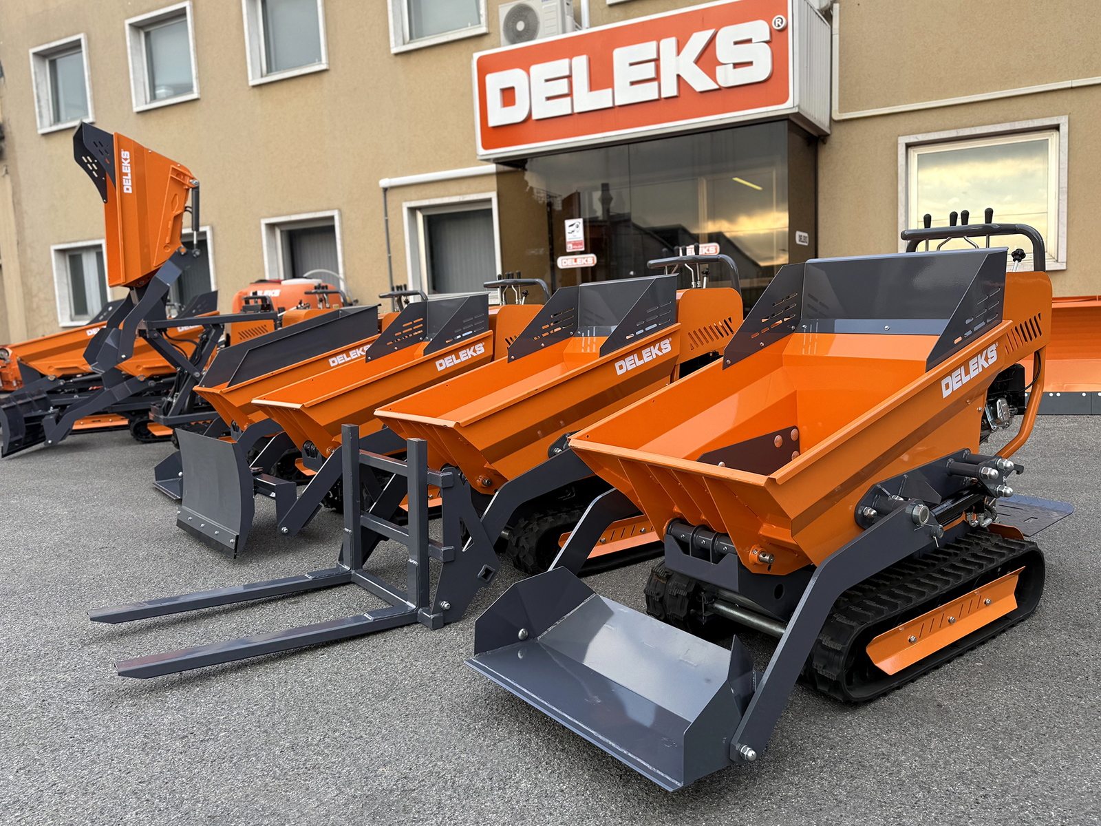 DELEKS® V3000 Selbstladender Minidumper auf Raupen, hydrostatisches Getriebe, Bedienerplattform, Briggs&Stratton Motor, Elektrostart.