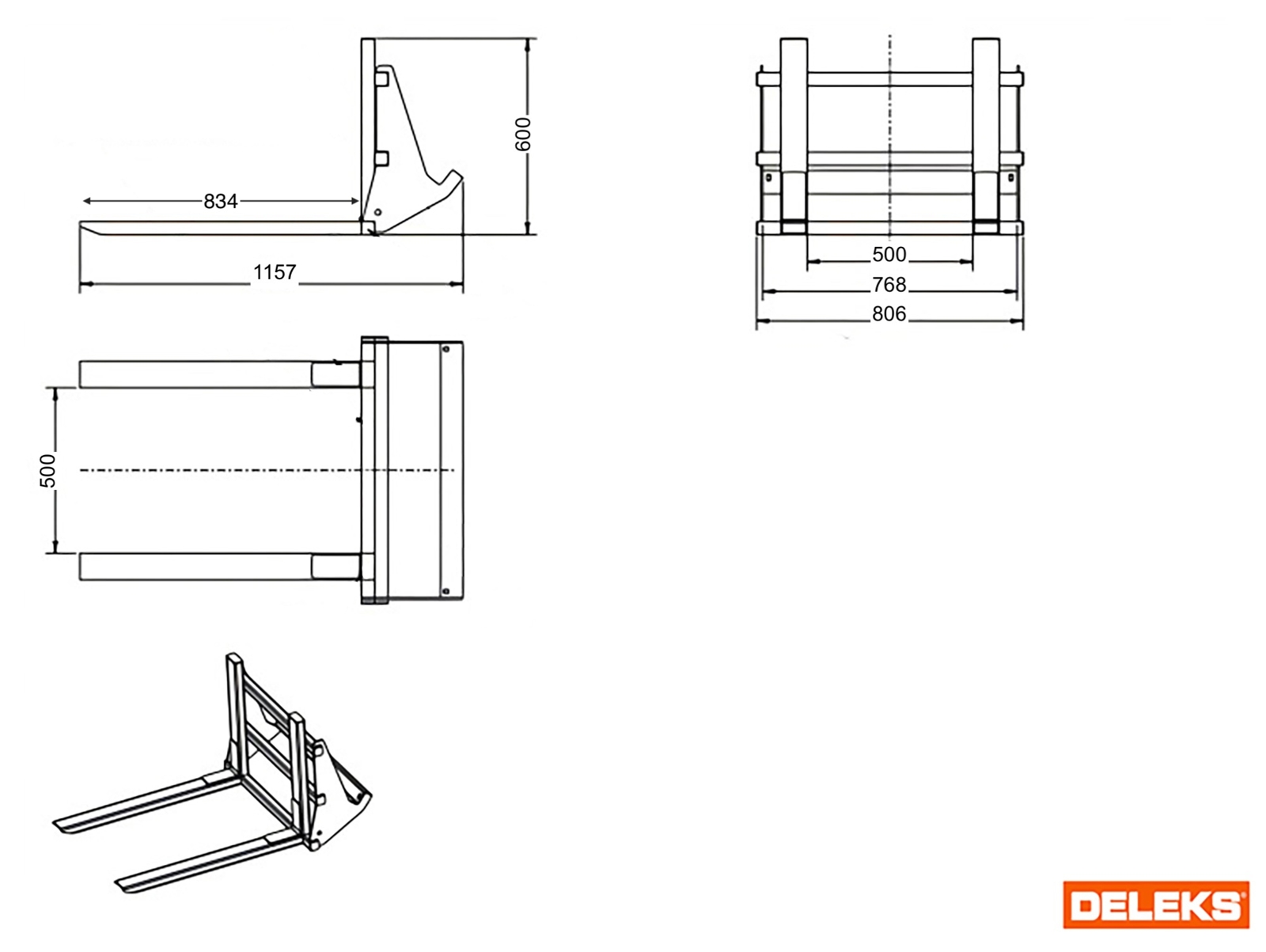 Die DELEKS®-Gabeln für die Minidumper V3000 und V3000H sind für die Handhabung von Paletten und kompakten Lasten bis 120 kg ausgelegt. Das Zubehör ersetzt die Standardschaufel über eine verschraubte Befestigung, ohne strukturelle Änderungen.