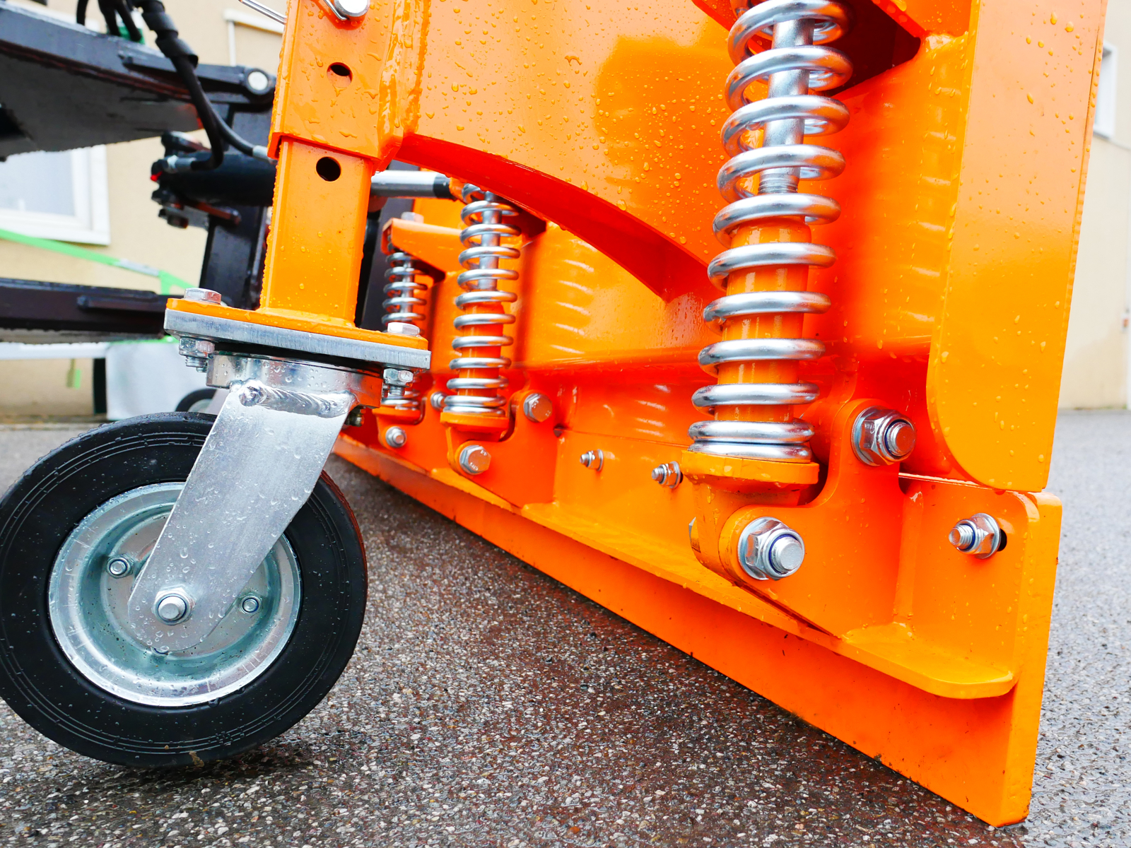 SSH-04-2.6-A Heavy-duty snowplow with universal plate, with hydraulic lifting and angling. It attaches to the tractor via a quick coupling robust plate. 4 front hydraulic pipes from 1.5m. On request we supply four hydraulic pipes to add an additional 4,0m of length. Our quick attachment system means pipes can be connected to the four hydraulic outlets of the tractor in seconds. The blade itself is sharp, replaceable steel (on request we customize the blade with Rubber), Couple marker lights.