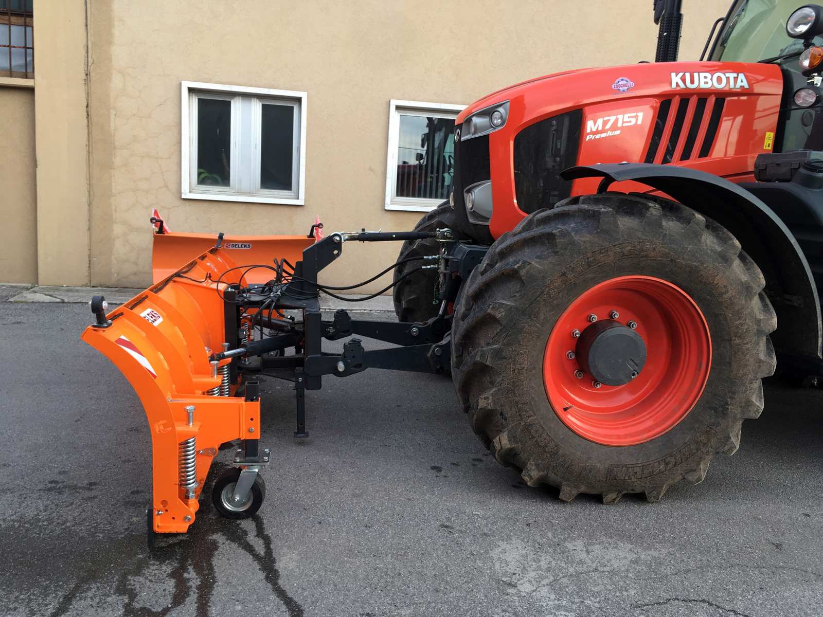 SSH-04 3.0-C Heavy-duty snowplow has been designed for larger tractors with 3-point hitch of Cat. 2-3, with power range from 90 to 130hp with rear or front linkage. Compatible with all tractors as Landini Power, M Kubota, Massey Ferguson, John Deere 5 Series, Same Explorer, Fiat, Case, Claas, Deutz-Fahr.