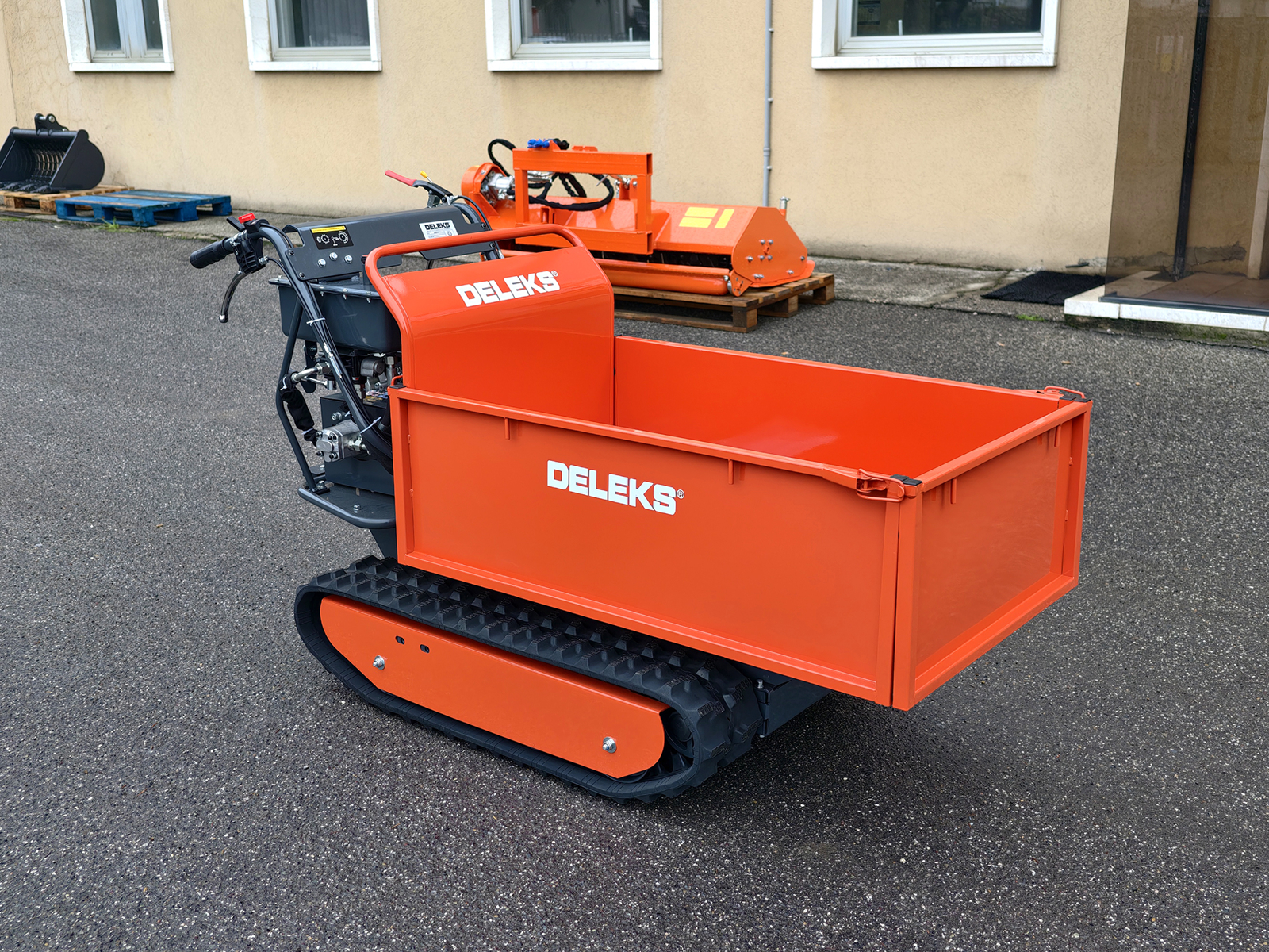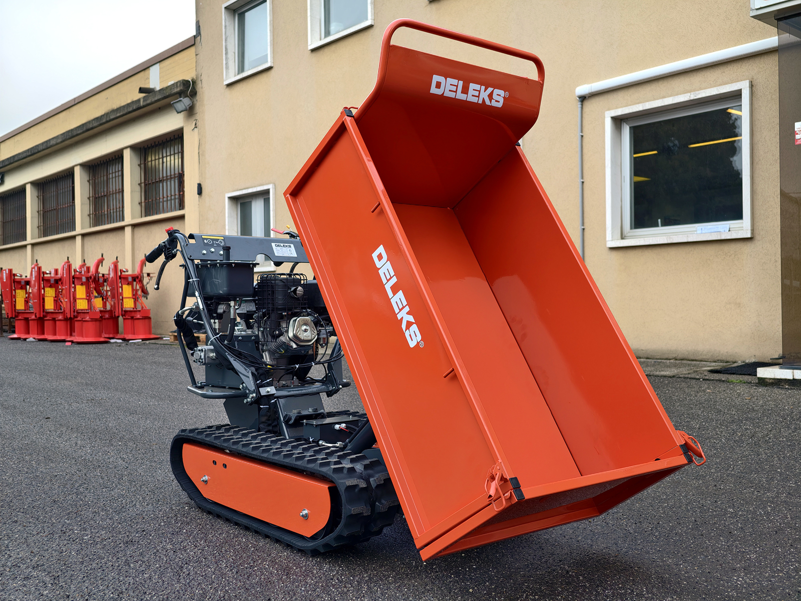 Der DELEKS® MD-800FB ist ein Raupen-Minidumper der oberen Leistungsklasse, konzipiert für professionelle und semiprofessionelle Einsätze, bei denen hohe Tragfähigkeit, robuste Bauweise und hohe Vielseitigkeit gefordert sind.