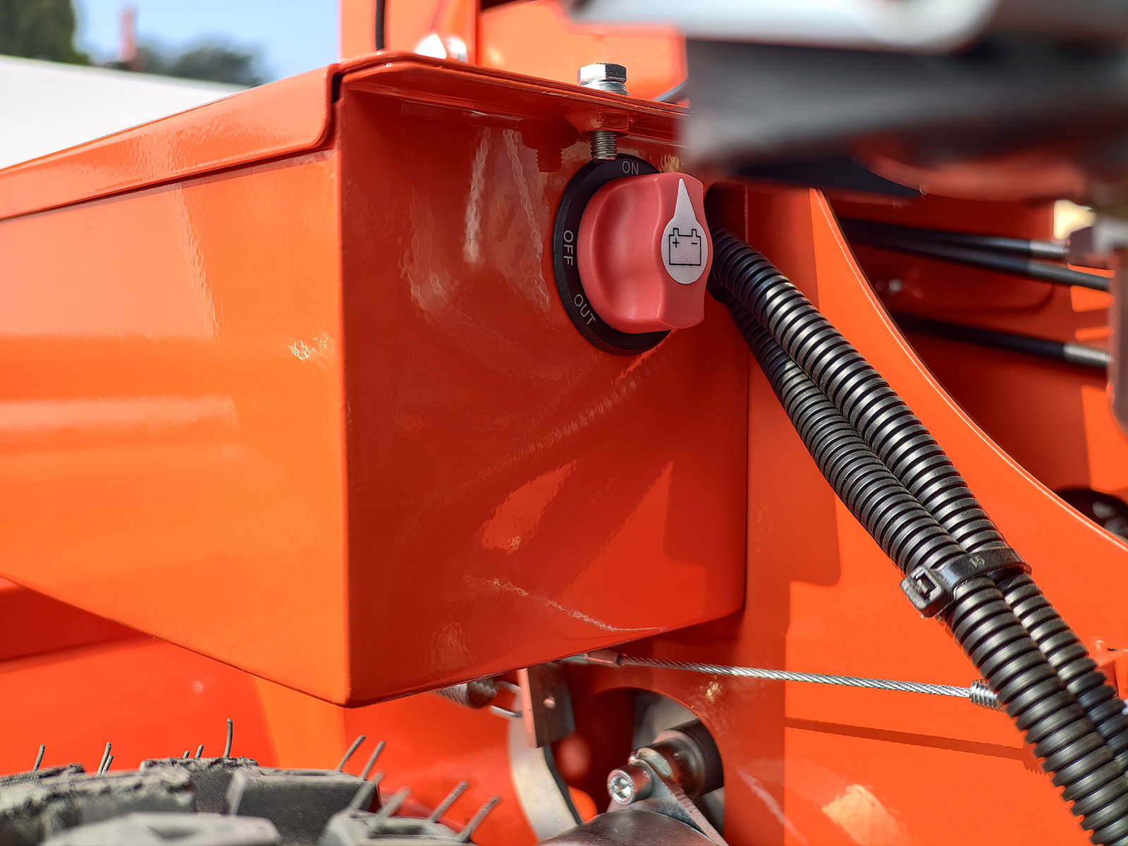 Das Zerkleinerungssystem basiert auf einem Hochträgheitsrotor mit 22 Messergruppen, wobei jede Gruppe aus 3 Elementen besteht (2 gebogene Messer und 1 gerades zentrales Messer), insgesamt 66 Messer. Diese Konfiguration gewährleistet eine höhere Schnittleistung und eine bessere Zerkleinerungsqualität bei Gras, Gestrüpp und kleinen Holzresten. Das schwimmend gelagerte Messersystem reduziert das Risiko von Rotorschäden bei unbeabsichtigten Kollisionen mit Steinen oder Fremdkörpern. Die Kraftübertragung erfolgt über ein Doppelriemensystem, das im Vergleich zu Einriemenlösungen eine höhere Zuverlässigkeit und eine bessere Kraftverteilung bietet.