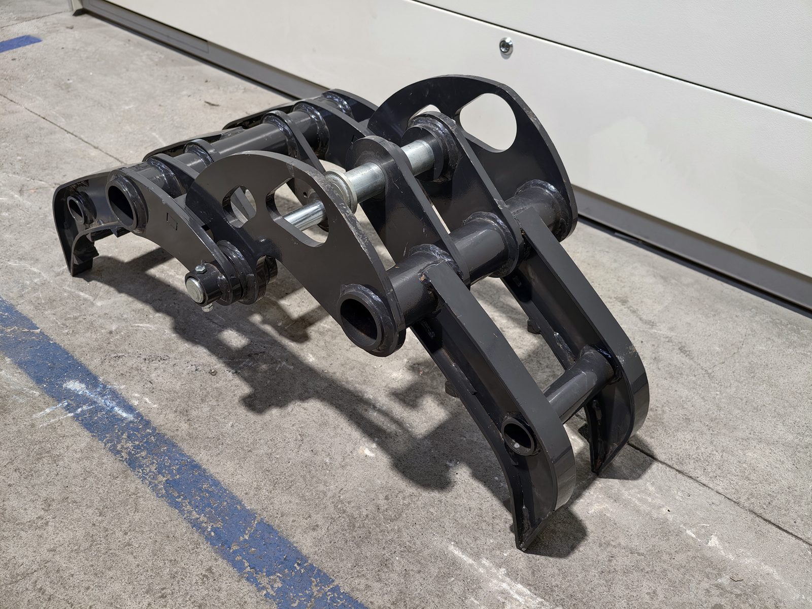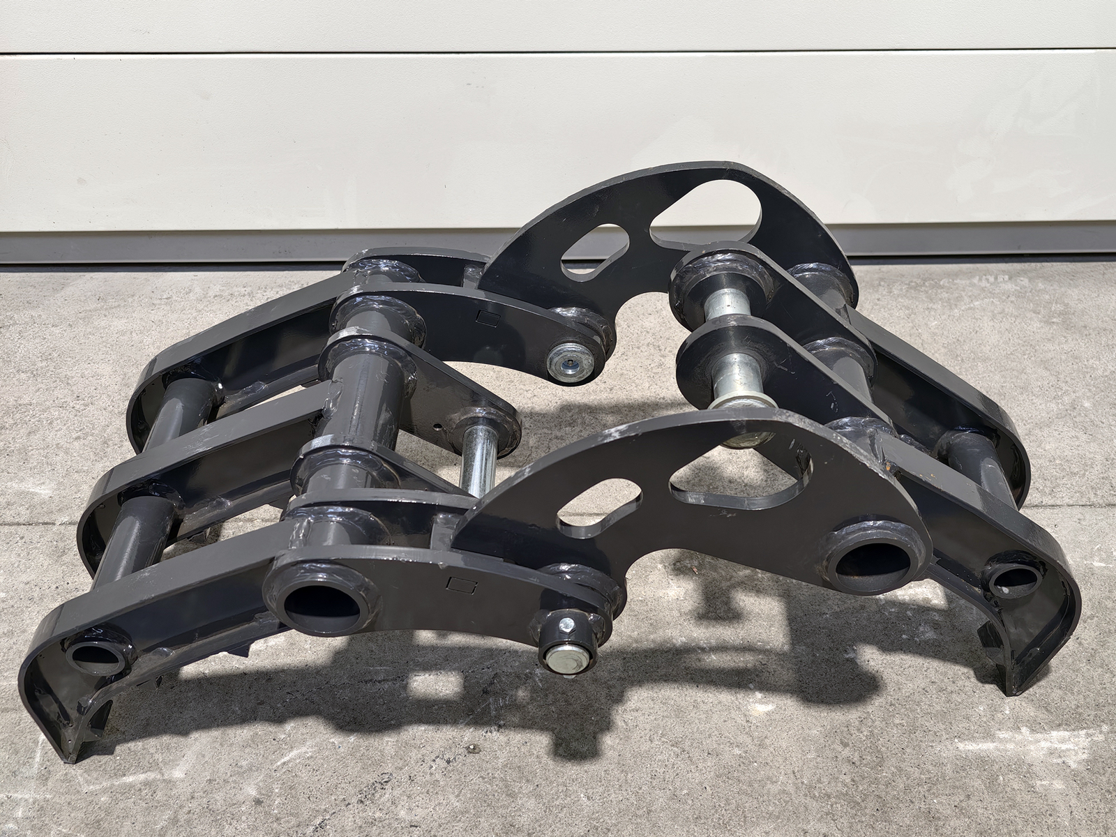 SCHLIESSENGreifer für S280-Minibagger, gefertigt aus hochfestem Baustahl, mit Einzelantrieb und profilierten Greifarmen für kompakte Materialien. Verbindung zum Löffelstiel über zwei Bolzen Ø35 mm mit Schmiernippeln oder über den mechanischen Schnellwechsler S280. Entwickelt für hohe Torsionssteifigkeit und Belastbarkeit beim Handling unregelmäßiger Lasten.