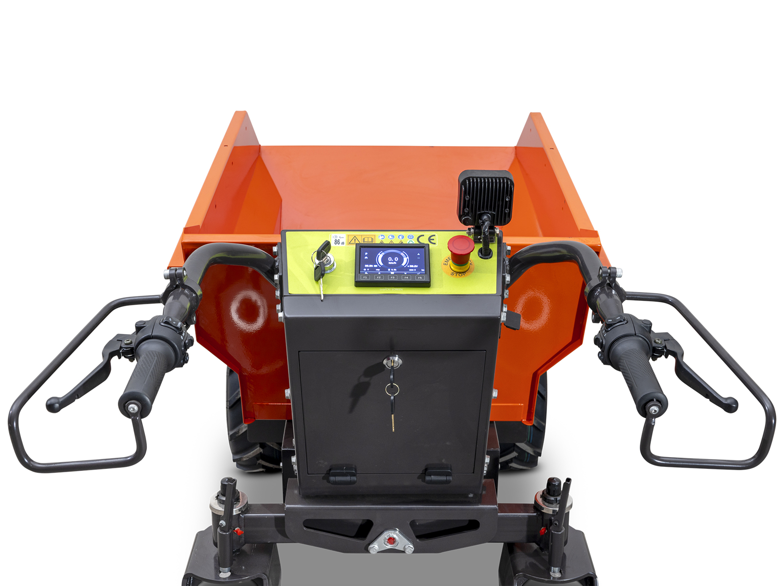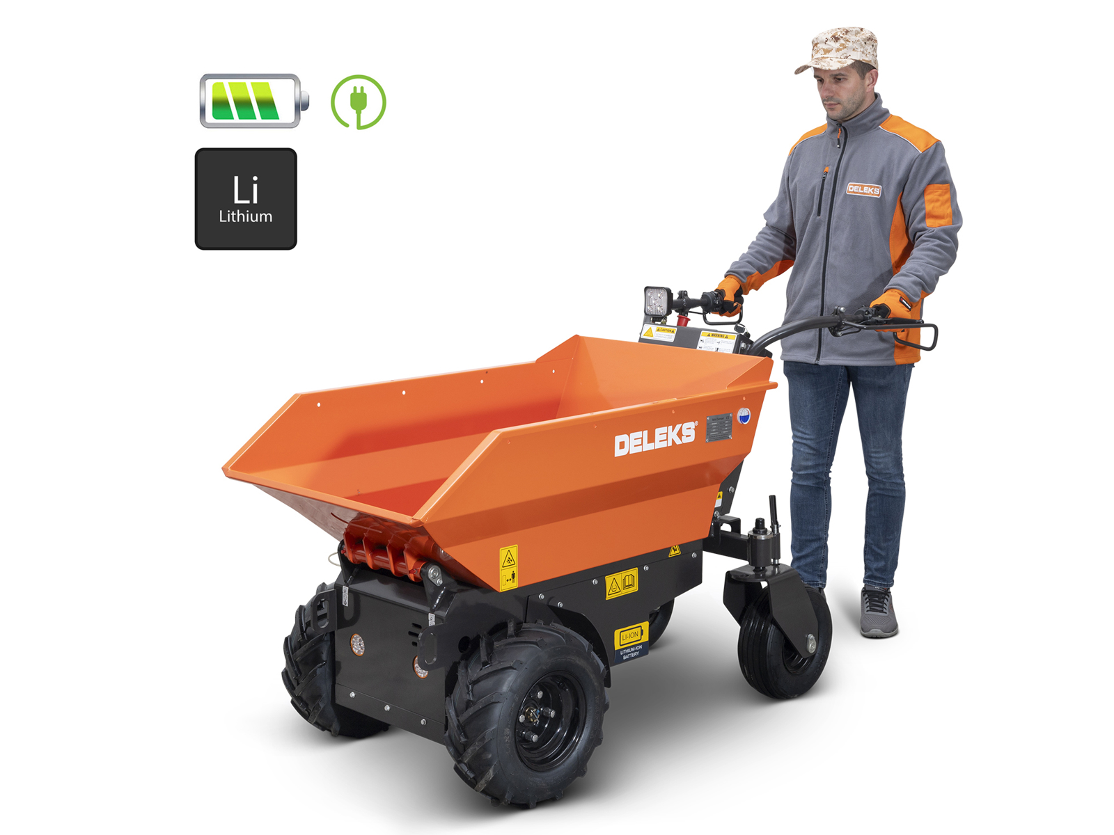 100 % elektrische Schubkarre, Lithium Batterie, mit Kippmulde mit hydraulischer Kippung
