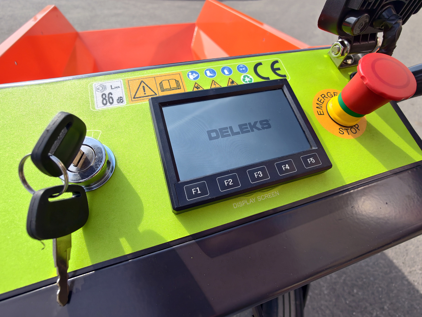 Elektrische Motorschubkarre DELEKS® ME500EL, Tragkraft 500 kg, mit herausnehmbarem 51.2V 30Ah Lithium-Akku, bis zu 12 Stunden Laufzeit, hydraulischer Kippfunktion und elektromagnetischer Bremse.