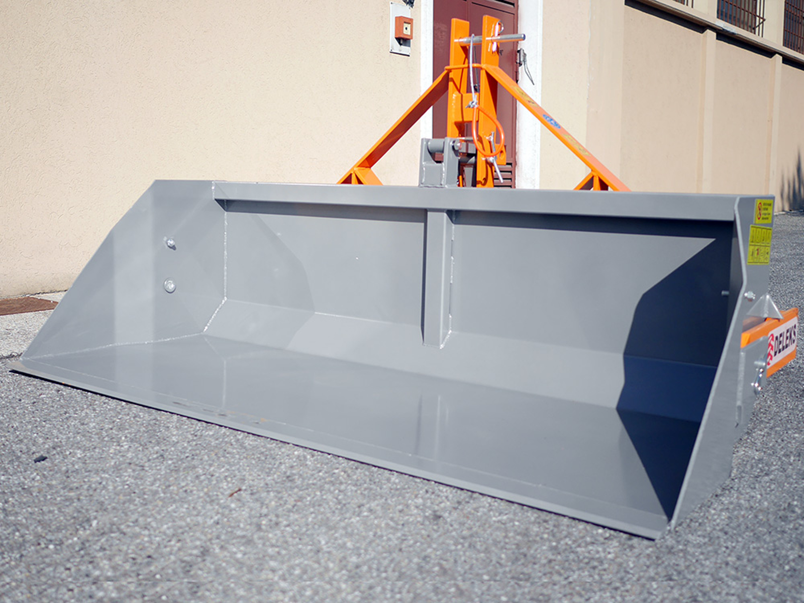 Mechanische Heckschaufel, rundum verstärkt, zum Laden und Transport verschiedenster Materialien wie Kies, Torf oder Holz, sowie für Räumarbeiten bei Schnee und Einebnung von Böden verschiedenster Beschaffenheiten. Geeignet für Traktoren und Schlepper mit Reifen oder Gleisketten von 50 – 90 PS wie z.Bsp. New Holland TK4000, T3030, T4F, John Deere Serie 4 – 5, Landini Mistral, SAME Solaris, Carraro, uvm. Universal 3-Punktaufnahme Kategorie 1 – 2. CE Zertifizierung, 2 Jahre Garantie.