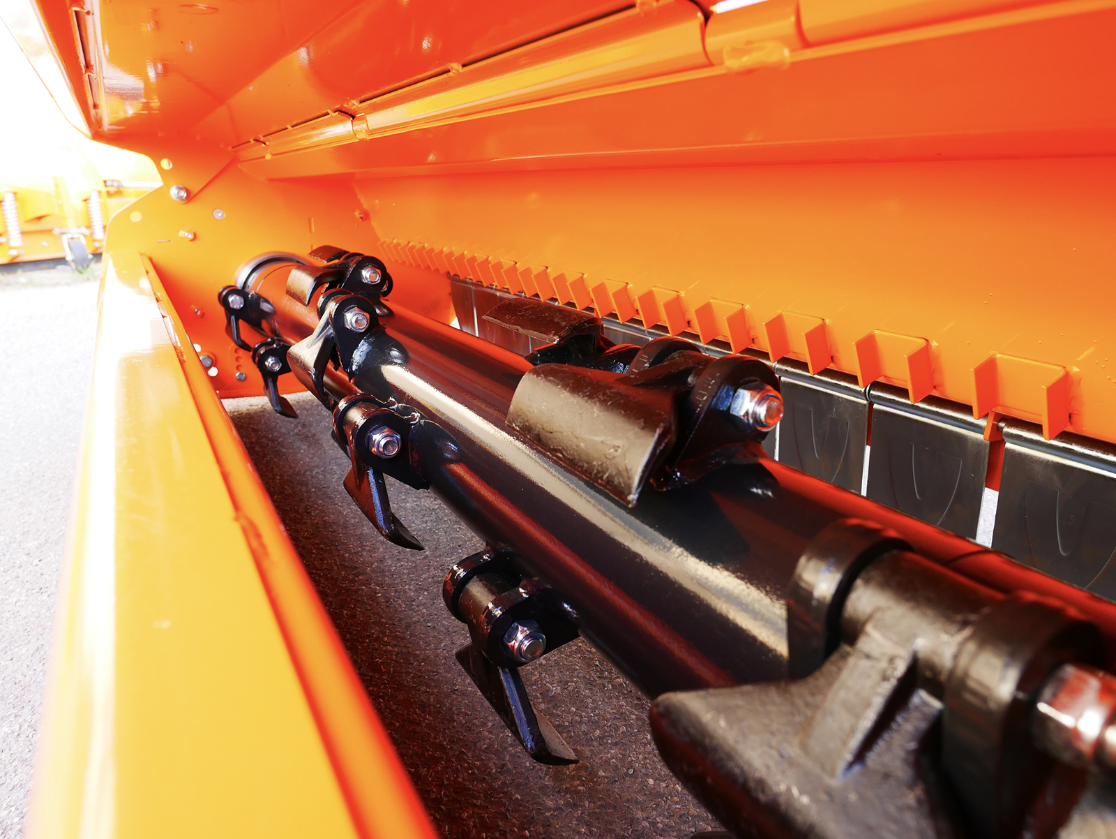 Seitlich verbautes Getriebe für besseres Arbeiten über die Spur hinaus.