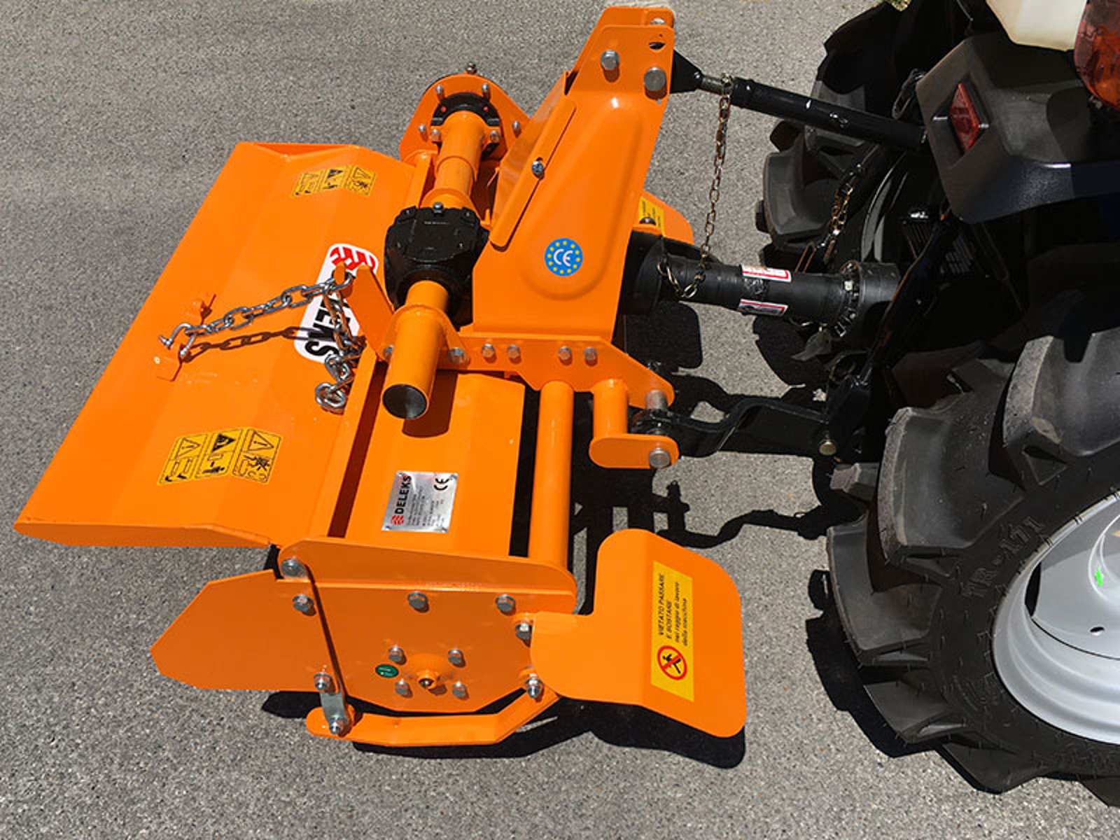 Leichte Bodenfräse, seitenverstellbar, zur Aufbereitung des Bodens in Wein- oder Obstbau, Baumschulen, Gemüsebau oder allgemeinem Garten- und Landschaftsbau. Geeignet für alle Kleintraktoren von 14 bis 35 PS wie z. Bsp. Pasquali, Steyr, Deutz, Gudbrod, Goldoni Base 20, New Holland Boomer 25-30, John Deere Serie 2, Kubota, Iseki, Yanmar uvm. Universal 3-Punktaufnahme der Kategorie 1 (Bolzenaufnahme 19-22 mm). Nicht geeignet für das Anheben von Schnellkupplungen.