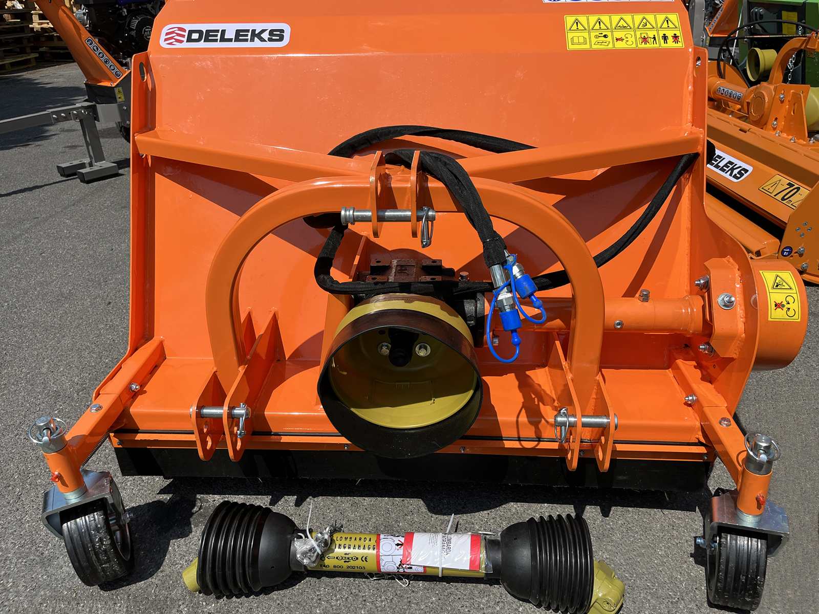 DELEKS® PANDA-120 Profi-Mulcher mit Grasfangkorb / Auffangbehälter / Sammelwanne hydrl. – geeignet zum Mähen von Sportplätzen oder Weinbergen. Gelenkwelle mit Sicherheitsbolzen.