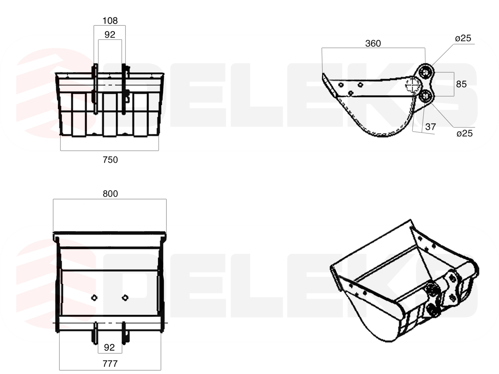 Hydraulischer Grabenräumlöffel passend für DELEKS® M80 - M100 Minibagger