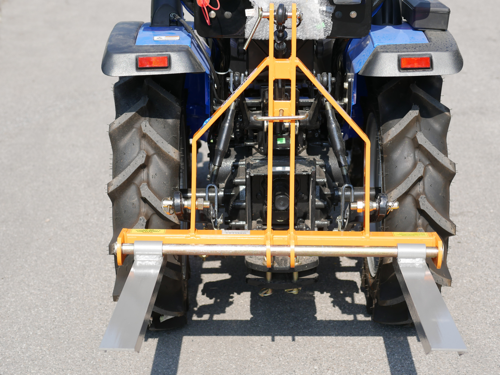 D-300 Palettengabel zum Laden und Transportieren von Palettenware. Max. Hubkraft 300 kg. Entworfen in besonders leichter Ausführung für die maximale Leistungsausnutzung kleiner Traktoren von 12 – 45 PS wie z.Bsp. Pasquali, Kubota B und bX, New Holland Boomer und TI13, Goldoni Base 20, John Deere Serie 1-2, Deutz, Steyr, Gudbrod uvm., mit universal 3-Punktaufnahme der Kategorie 1 (Bolzenaufnahme 19.0 – 22.0 mm). CE – Zertifizierung, 2 Jahre Garantie.