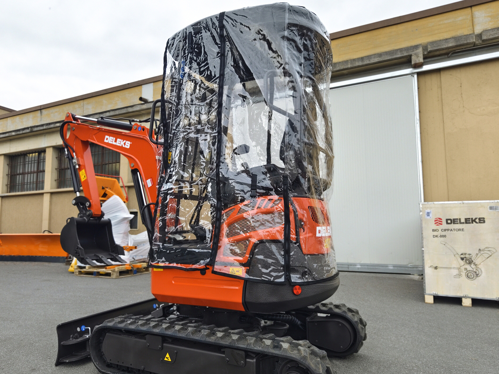Der Deleks Minibagger-Regenschutz ist wind- und wasserdicht.