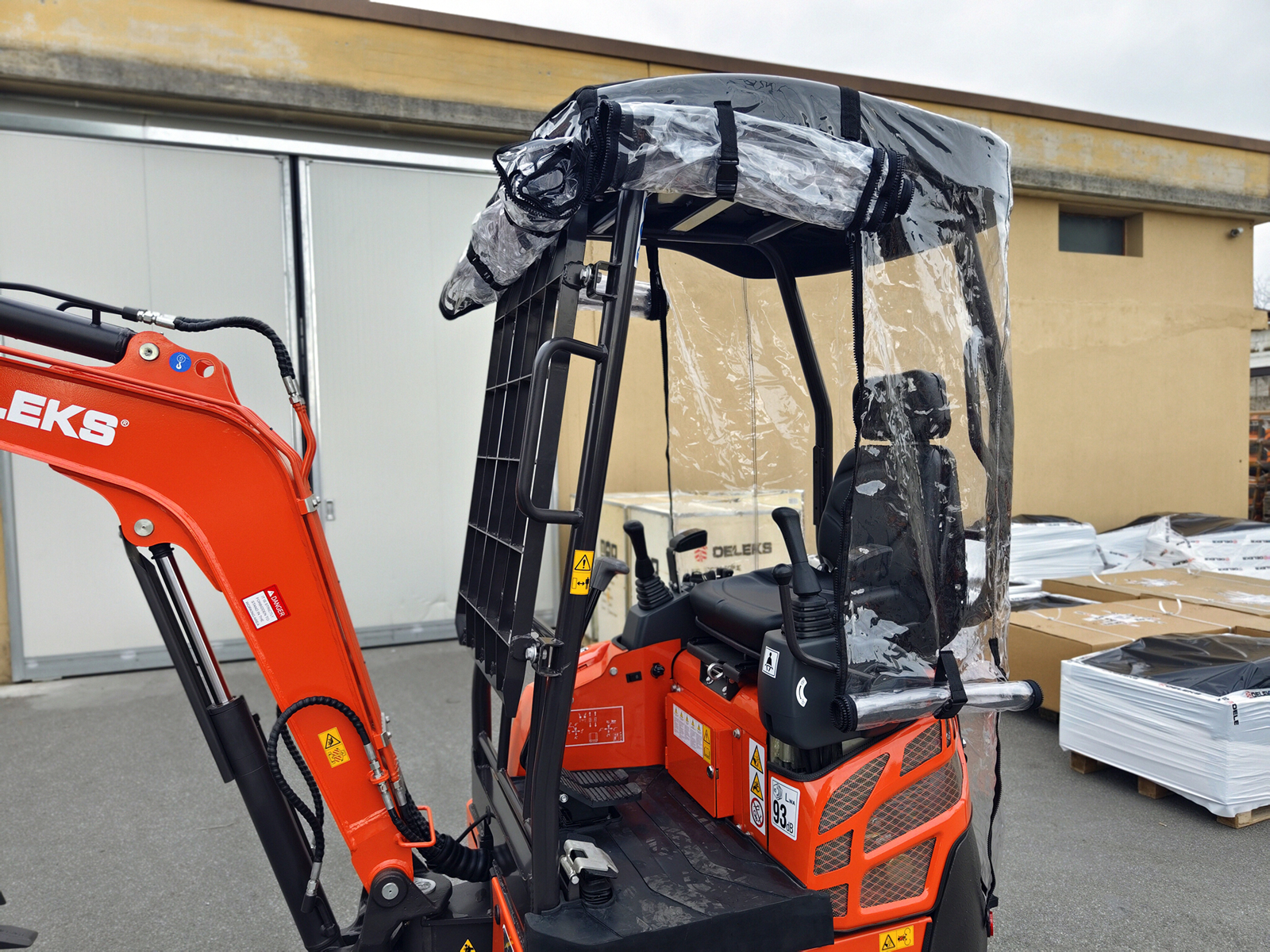 SCHLIESSENEgal ob das Wetter mitspielt oder nicht - der Universal Regen- und Windschutz ist die perfekte Lösung für den DELEKS® Minibagger M180 - M180SE (XN18 - XN20).