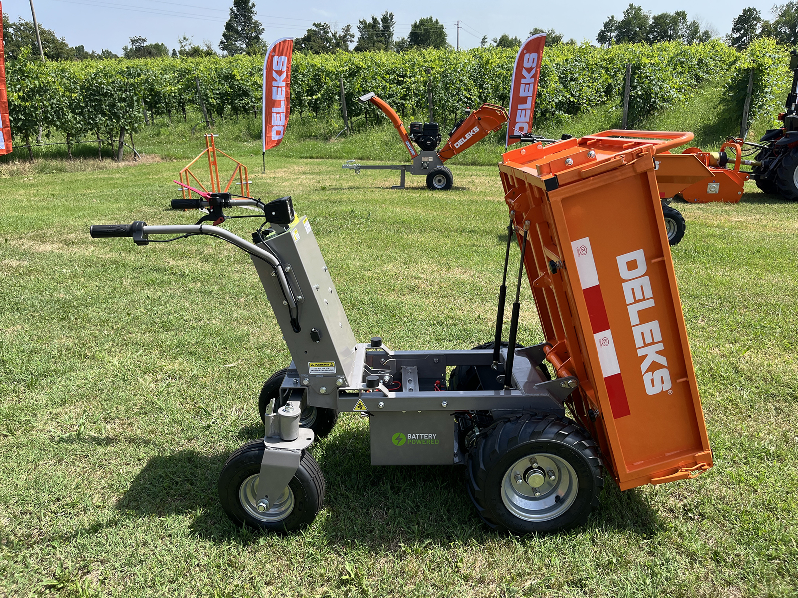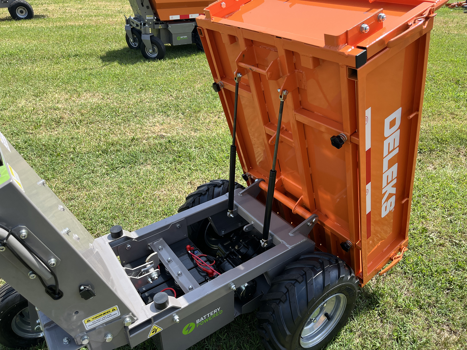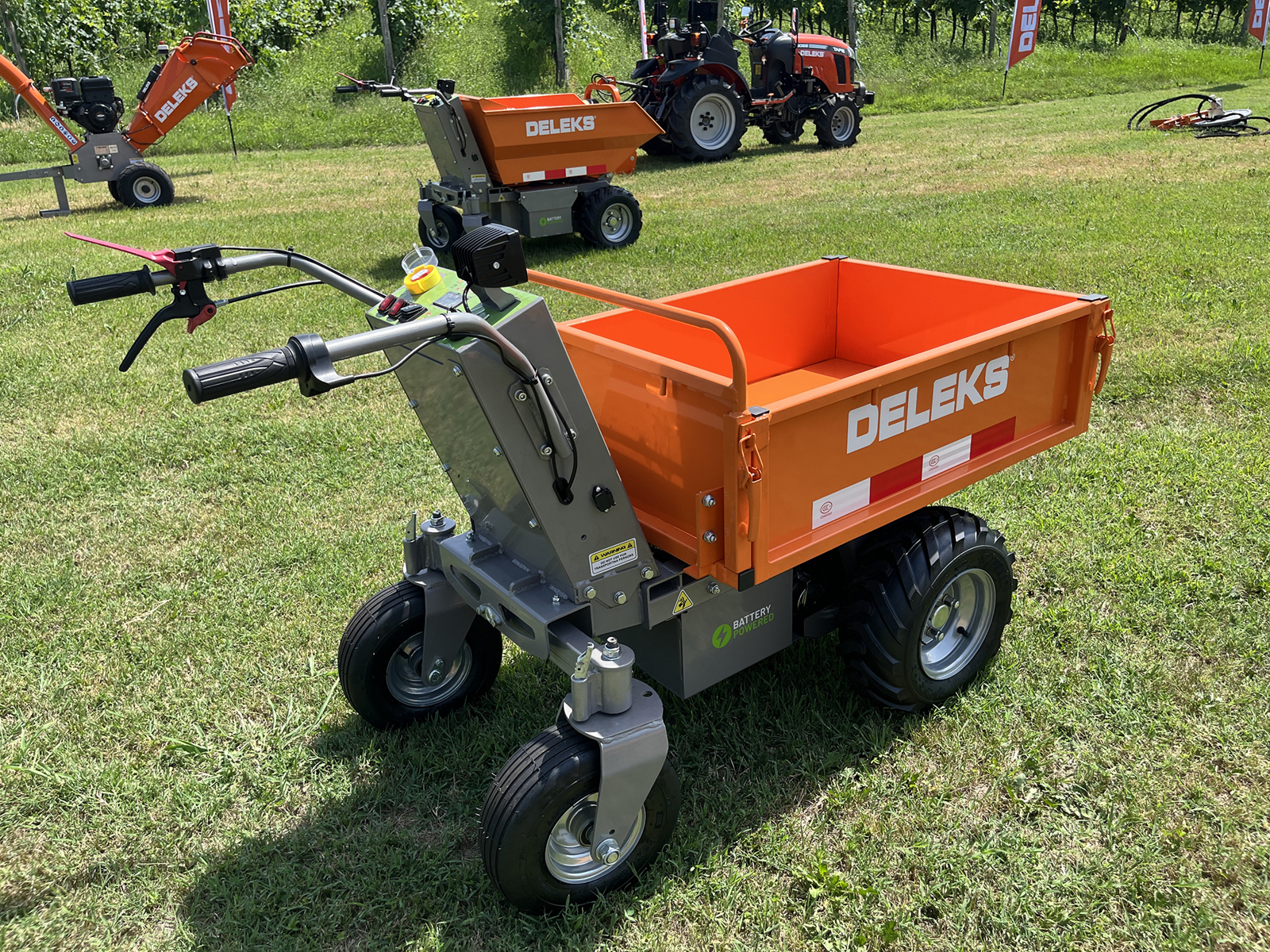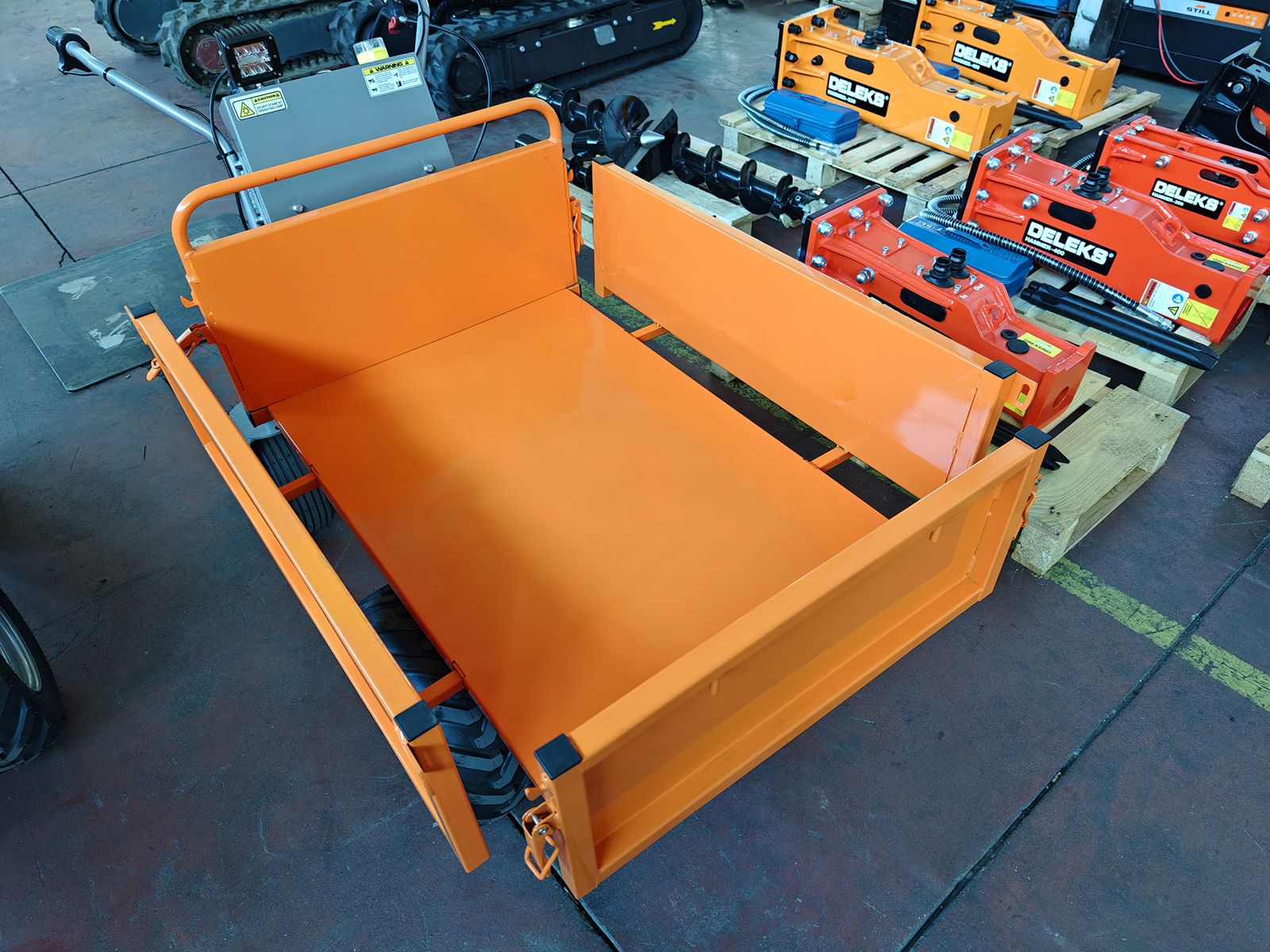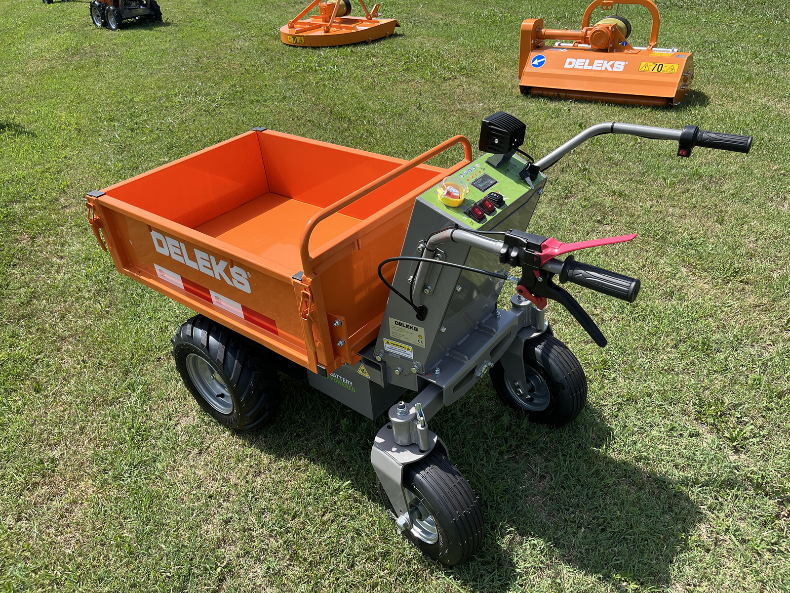 DELEKS® XE-500f elektrifizierte Schubkarre Minidumper mit Elektromotor, manueller Kippfunktion, Muldenkipper, Traglast 500kg.