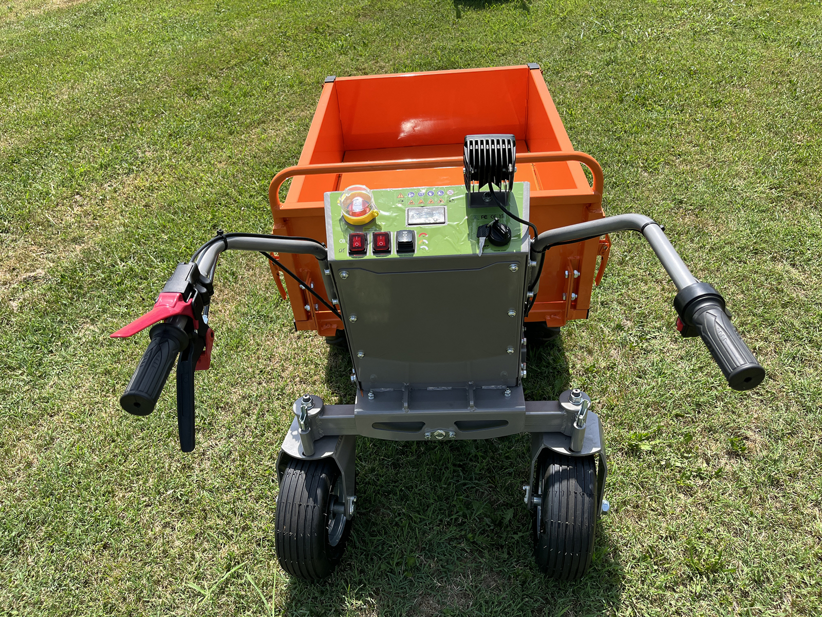 Die elektrische Schubkarre wird mit 4*12V / 32Ah-Bleibatterien für eine Autonomie von ca. 7 Stunden je nach Verwendungsart geliefert.