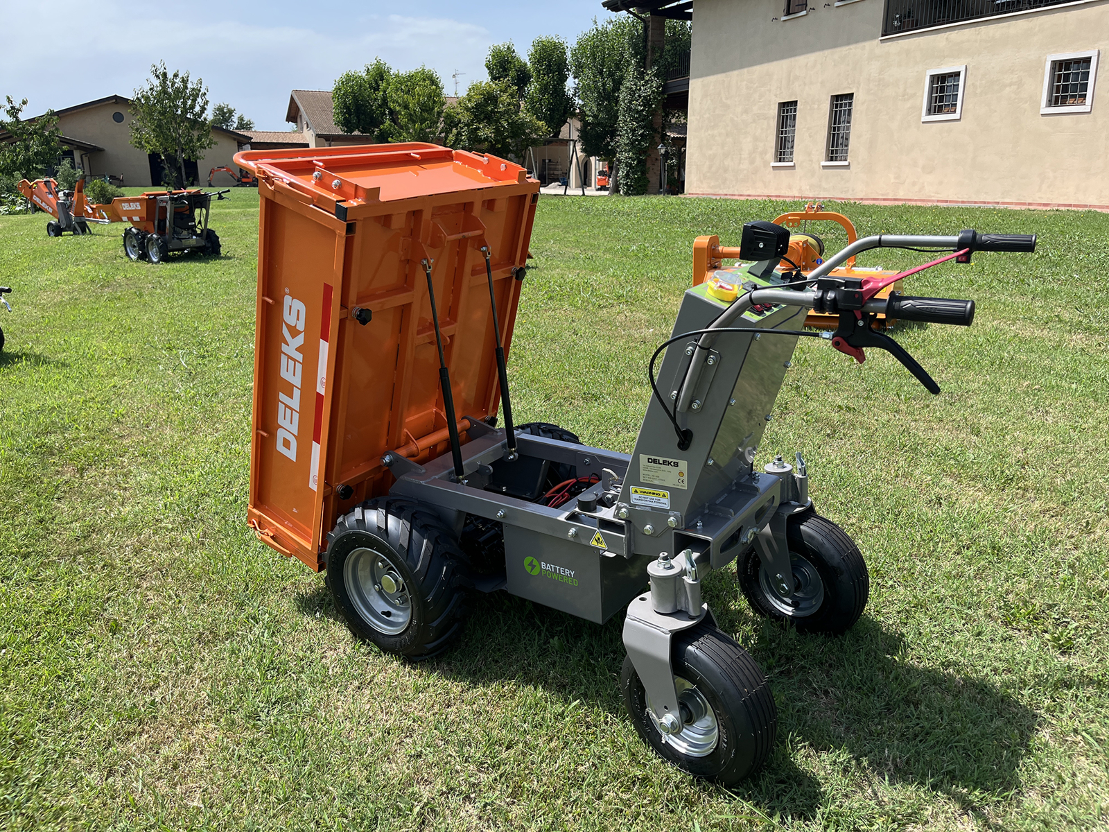 Diese DELEKS® Schubkarre mit elektrifiziertem Motor kann eine Last von 500 kg tragen, sie macht keinen Lärm, sie ist daher ideal im Landschaftsbau, auf dem Bau, in Reitställen, Gewächshäusern oder Ställen, zum Transport von Müll, Klumpen, Sand, Kies, Sträuchern, Holz, Steine, Erde usw.