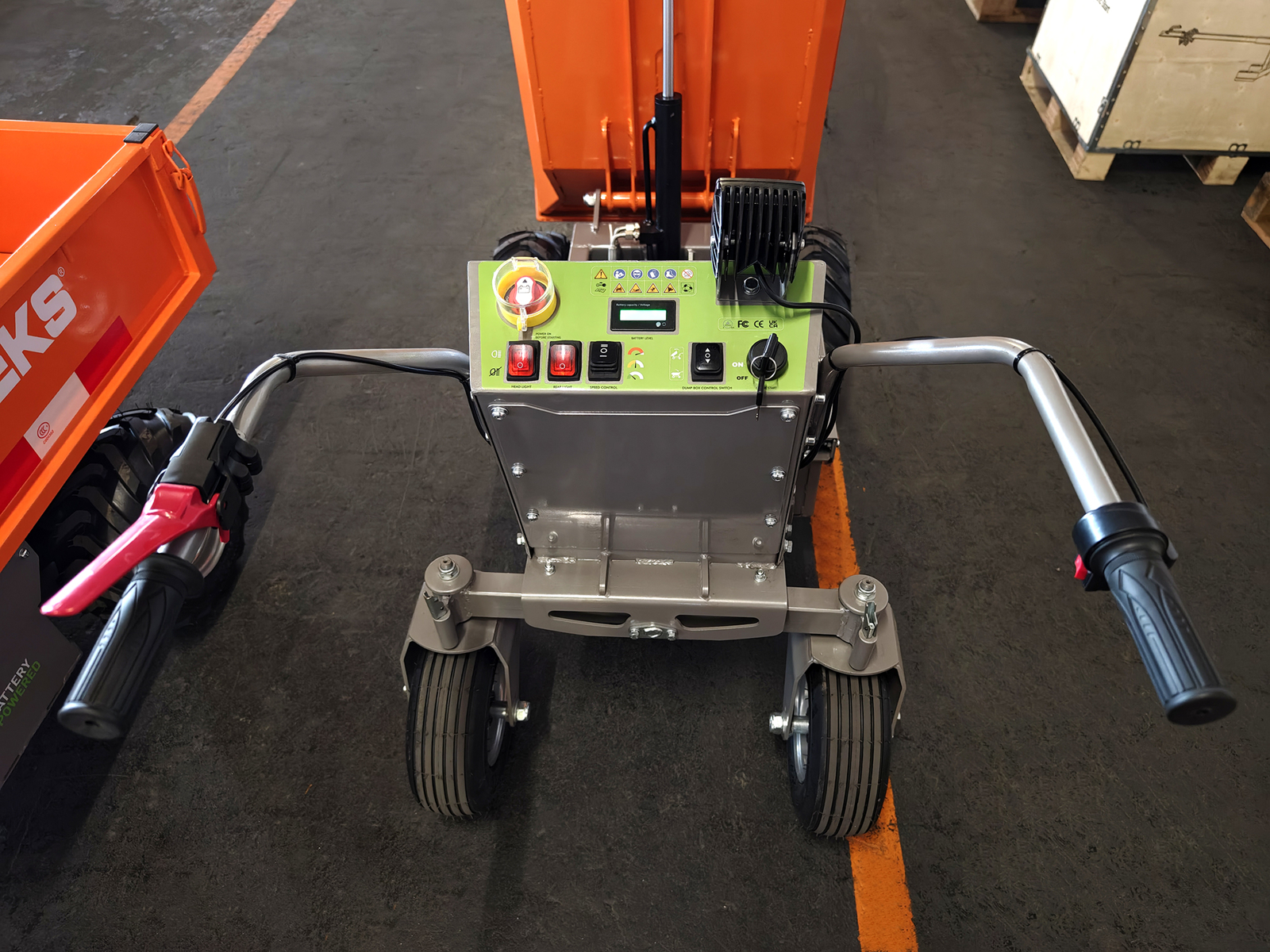 DELEKS® XE-500He Lithium electrified wheelbarrow, removable lithium battery 48V 60Ah, Minidumper with electric motor, hydraulic tipping, dumper body, load 500kg.