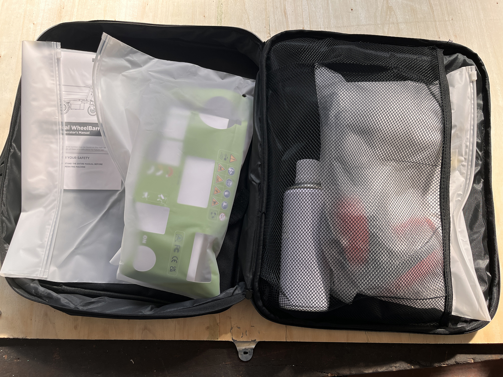 The electric wheelbarrow is supplied with 4*12V / 32Ah lead batteries for an autonomy of about 10-12 hours, depending on the type of use.