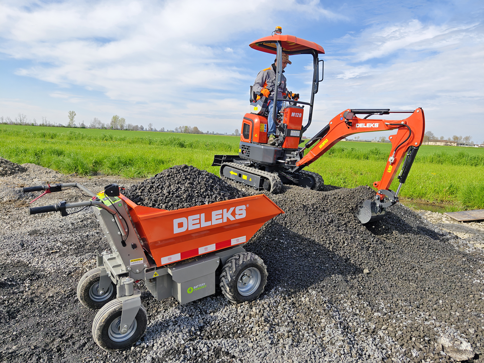 A typical use is combined with a DELEKS® Mini Excavator, for transporting gravel, earth, mud, sand, building materials, etc…
