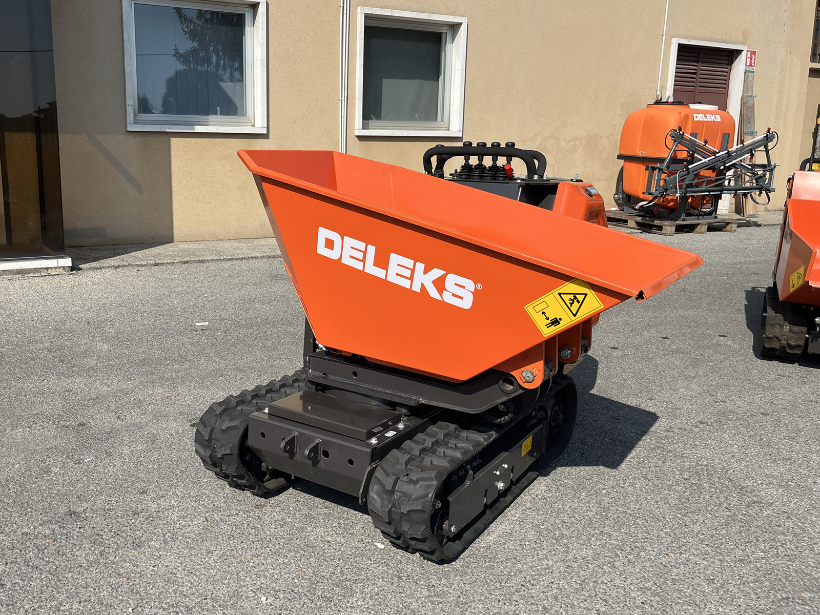 DELEKS® M8000R-BS Self-loading tracked minidumper, bucket with three-side unloading over 180° with hydraulic lift and rotation, locking valve on rotation, hydrostatic transmission, operator platform, Briggs&Stratton engine, electric start.