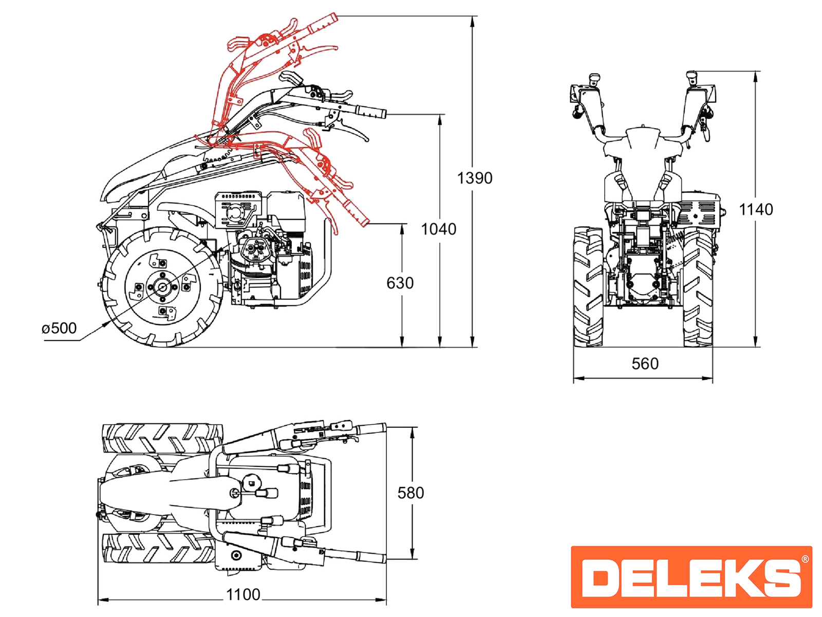 DELEKS® ZEUS Reversible, multi-purpose walking tractor, 14 hp Loncin petrol engine, 3+2 gearbox with quick shuttle, various accessories on request, Quick hitch (female) included.