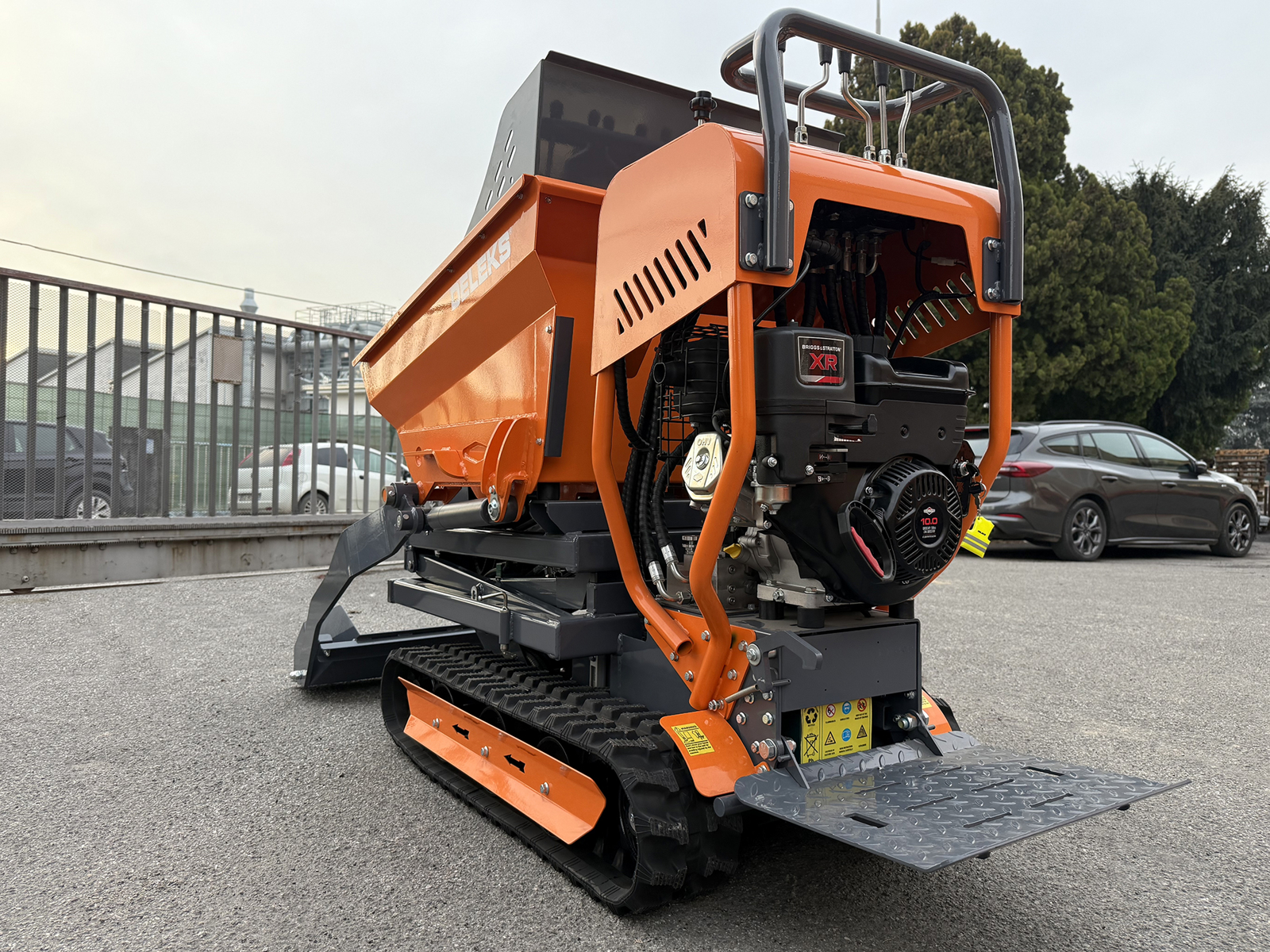 DELEKS® V3000HBS professional tracked self-loading mini dumper with high tip, hydrostatic transmission, operator platform and Briggs & Stratton engine with electric start.