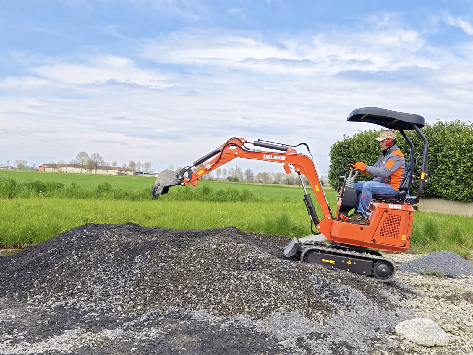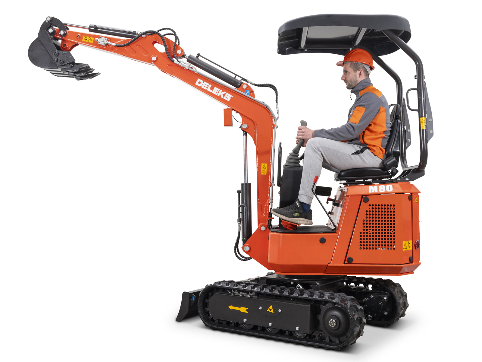 CLOSEThe DELEKS® M80 mini excavator, weighing 850 kg and powered by a Briggs & Stratton XR2100 13.5 HP petrol engine, is compact, powerful, and easy to use.
