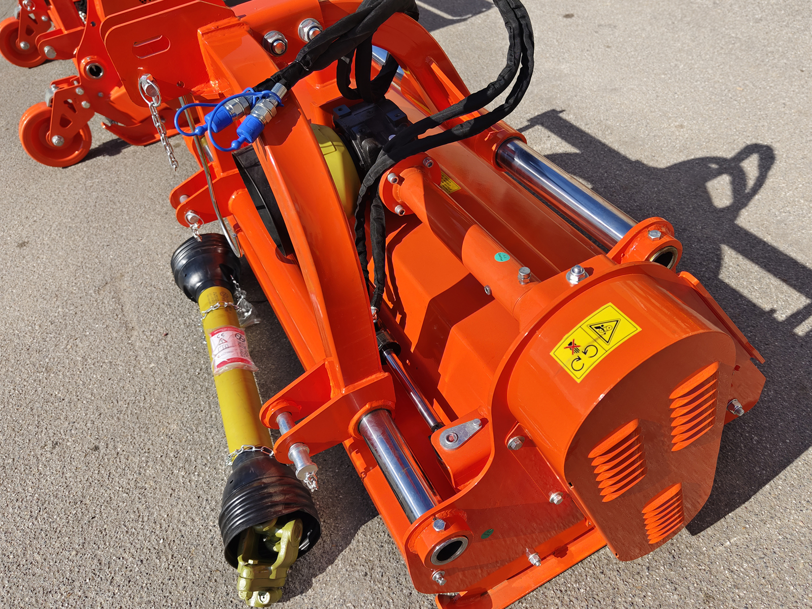 This mower is attached to the tractor using reinforced steel universal three point linkage and fits most 60-100hp tractors.