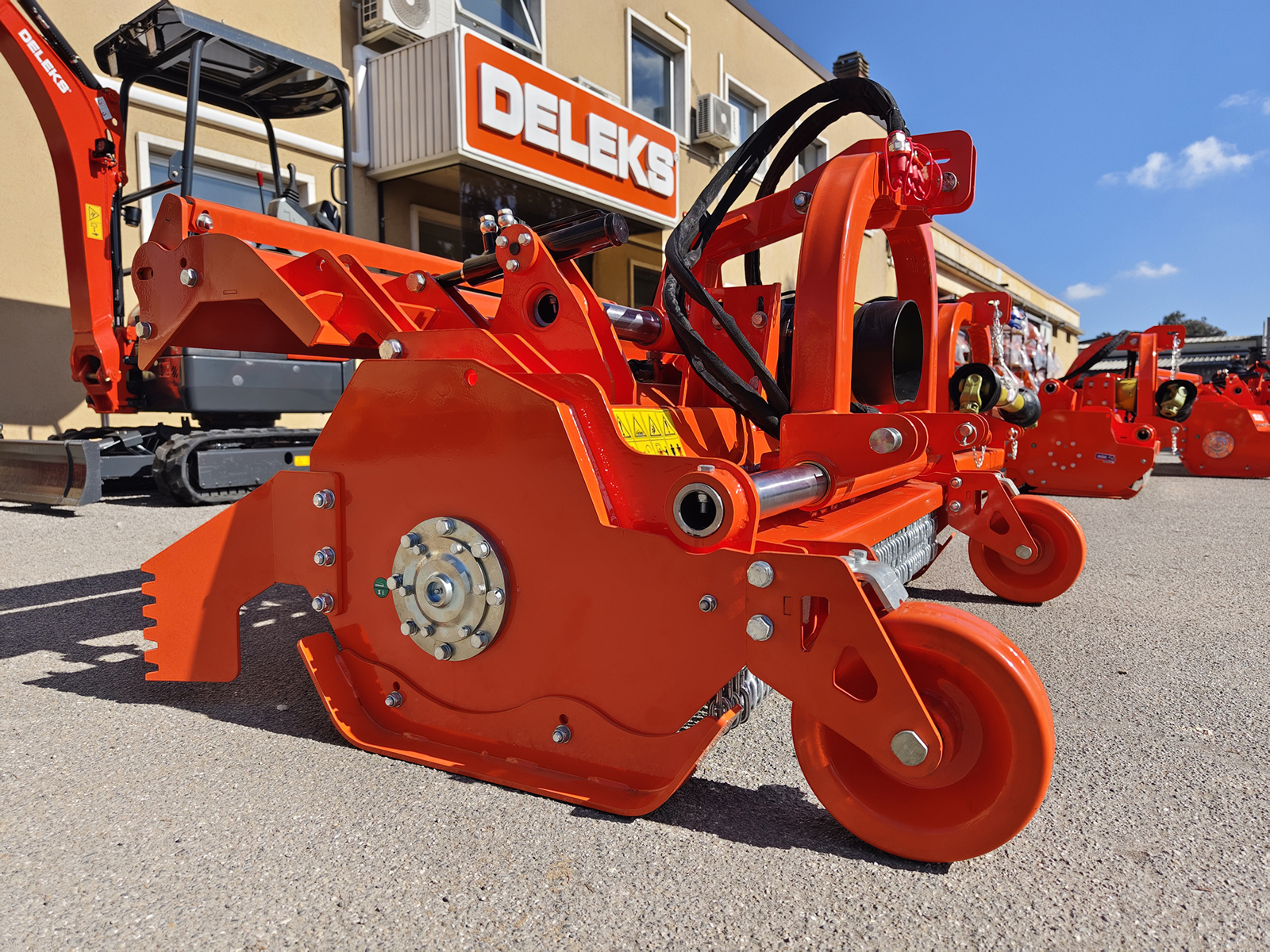 DELEKS® GORILLA-150 heavy-duty series shredder ideal for shredding vineyard, orchard, olive grove and woody material up to Ø 15 cm. Hydraulic drive and cardan shaft with safety bolt.
