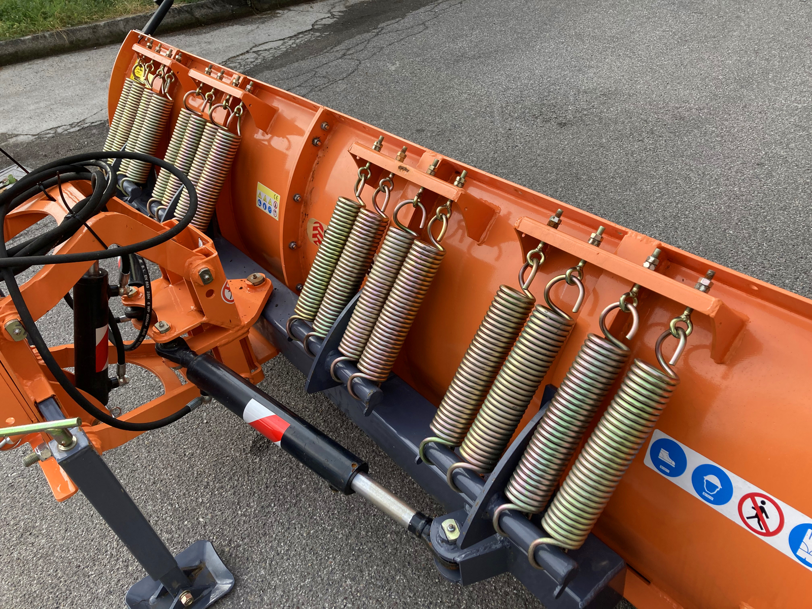 LN-250-A Frontal use Snow Plow with universal plate, with hydraulic lifting and angling. It attaches to the tractor via a quick coupling robust plate. 4 hydraulic pipes of 1.5m for front connection. On request we supply four hydraulic pipes to add an additional 4,0m of length. Our quick attachment system means pipes can be connected to the four hydraulic outlets of the tractor in seconds. The blade itself is sharp, replaceable steel edge (on request also available with Rubber edge), Couple of marker lights.