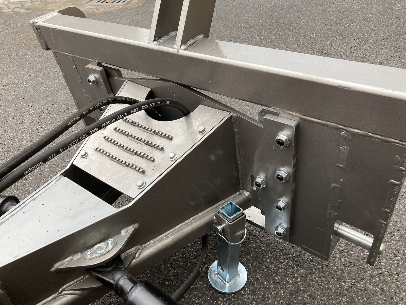 The 3-point hitch is removable and replaceable with fitting plate, EURO linkage, or Skid steer loaders.