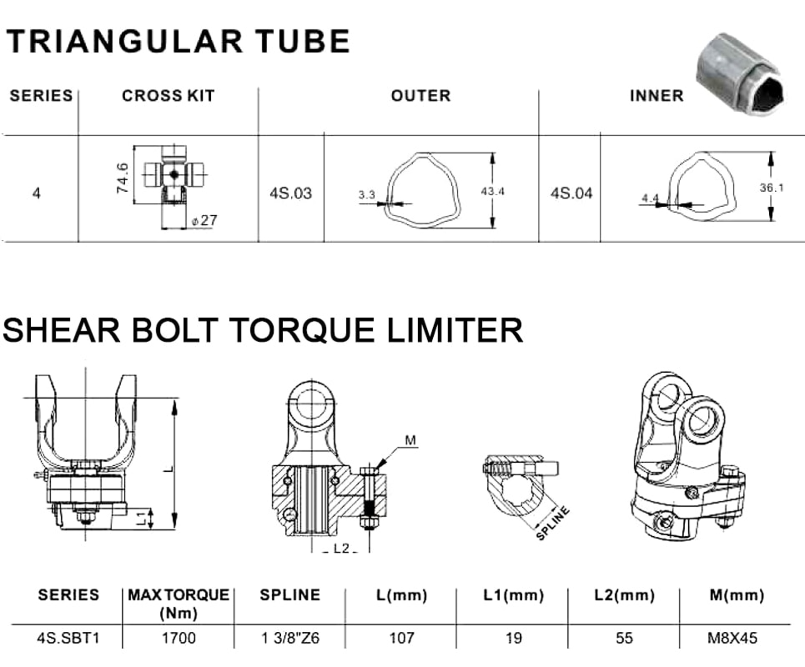 This device prevents overloading by means of a shear bolt of specified size. When the bolt shears off, the hub and yoke assembly is kept together by a ball bearing ring which allows the two parts to rotate independent of each other. It is mounted on the implement side.