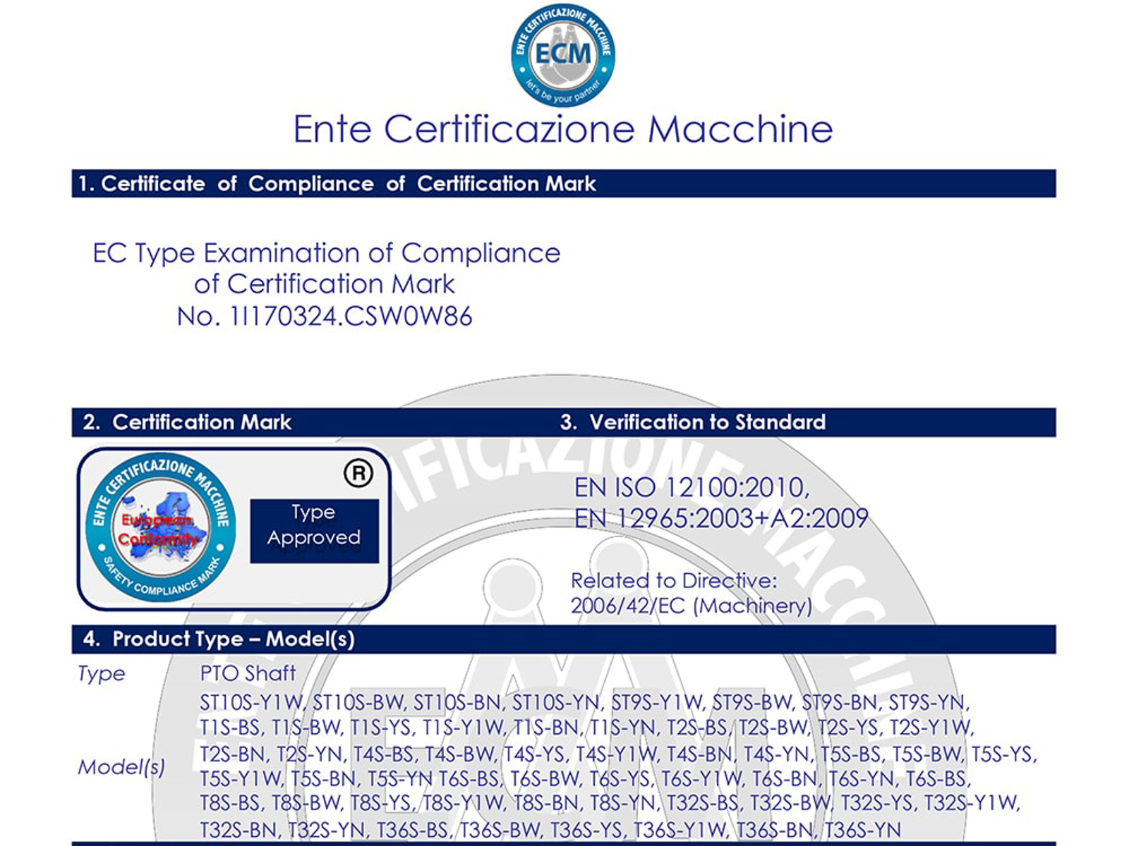 Certification Mark by ECM Ente Certificazione Macchine (Modena - Italy)