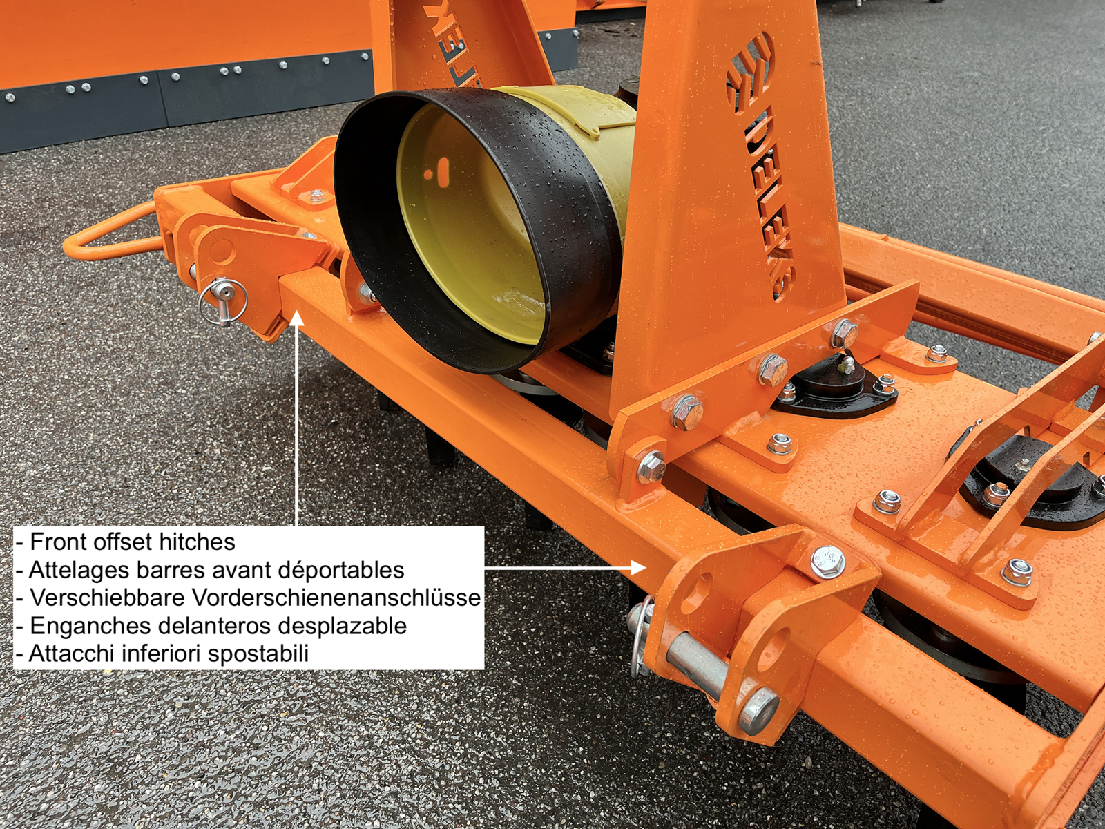 DELEKS® Power Harrow 125cm for tractors from 19 to 37 kW (25-50 HP), equipped with standard rear net roller and single speed gearbox for P.T.O. 540 r.p.m.