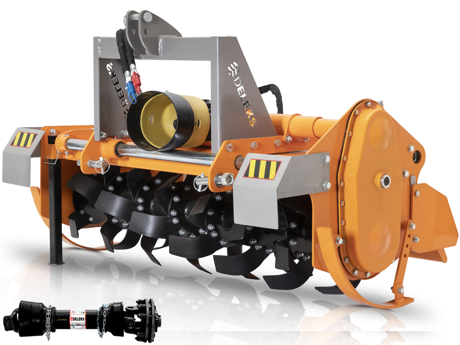 Rotary Tiller DELEKS® for 35-60HP Tractors, Rotovator 150cm / 360kg - 330mm Hydraulic offset - Side Gears Drive - Pto shaft CE included.