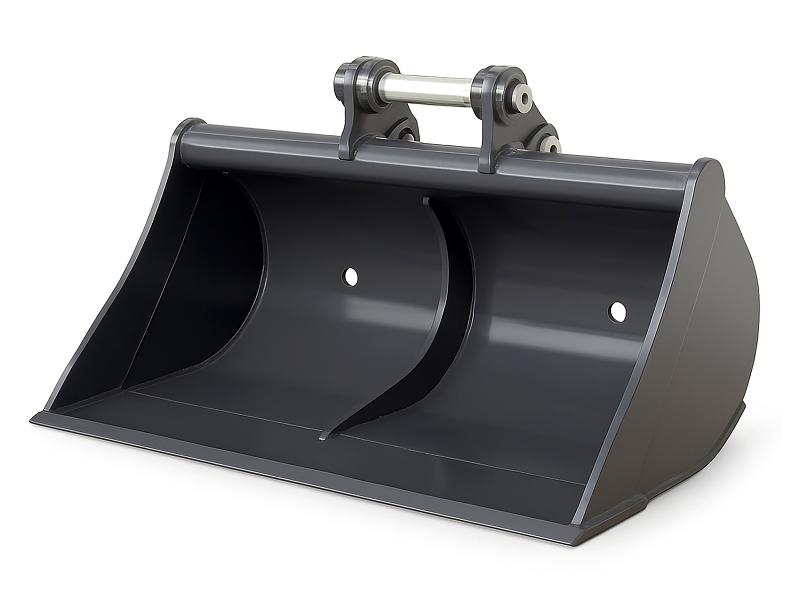 120 cm DELEKS® wide bucket for mini excavators with S280 attachment, supplied with 2 mounting pins.