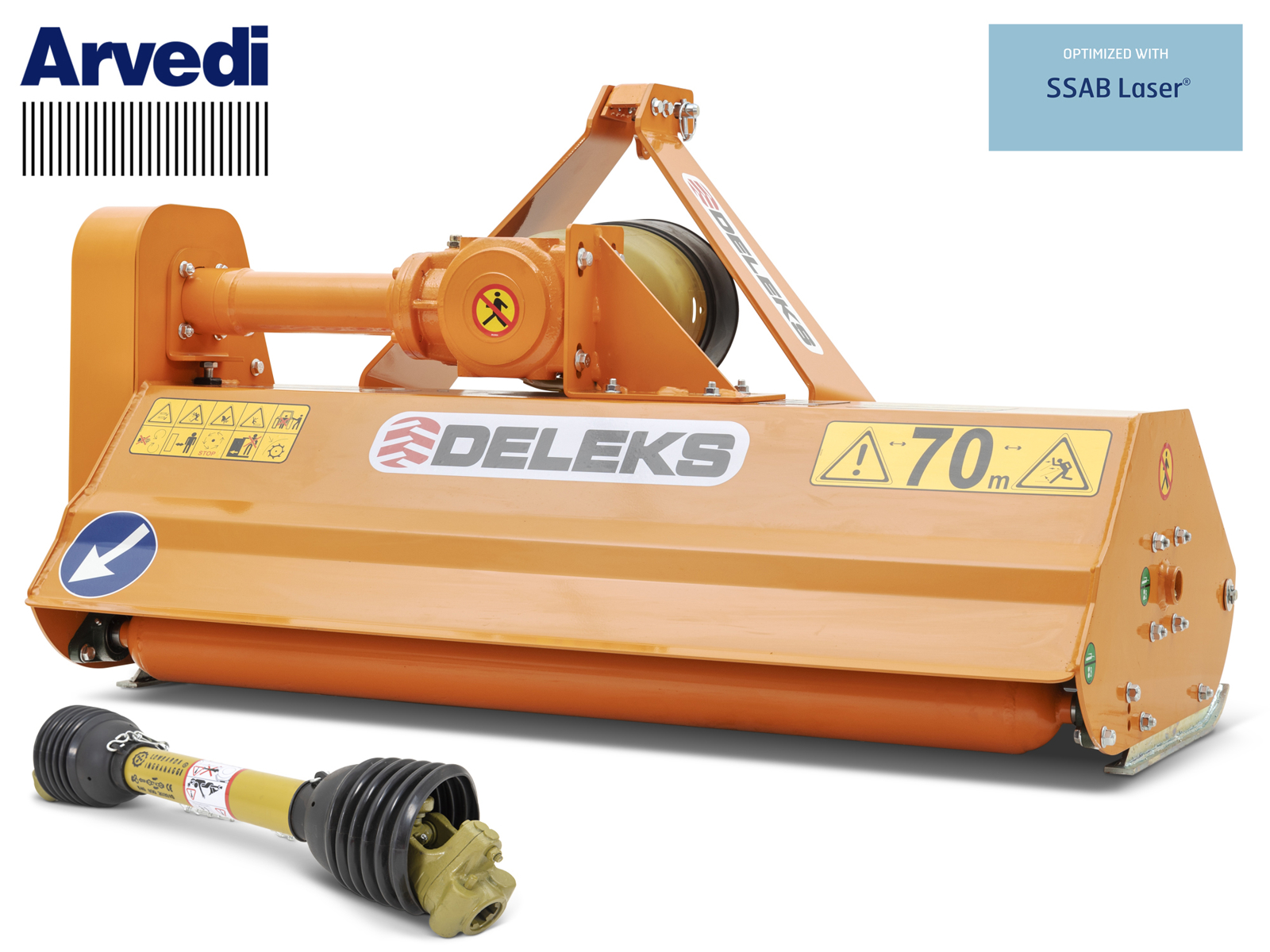 165cm working width, 222kg, for 25-45Hp tractors - DELEKS® LINCE-165 - Pto shaft CE included, Lombarda Ingranaggi Gearbox with free wheel.
