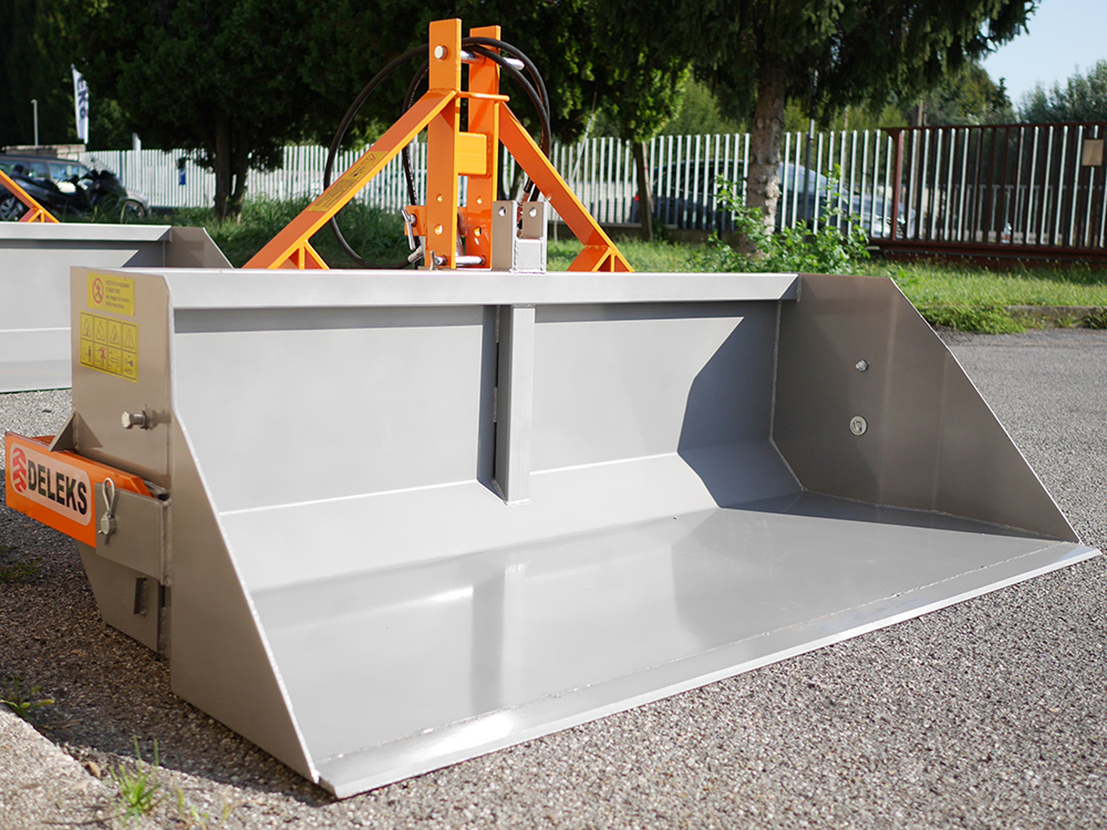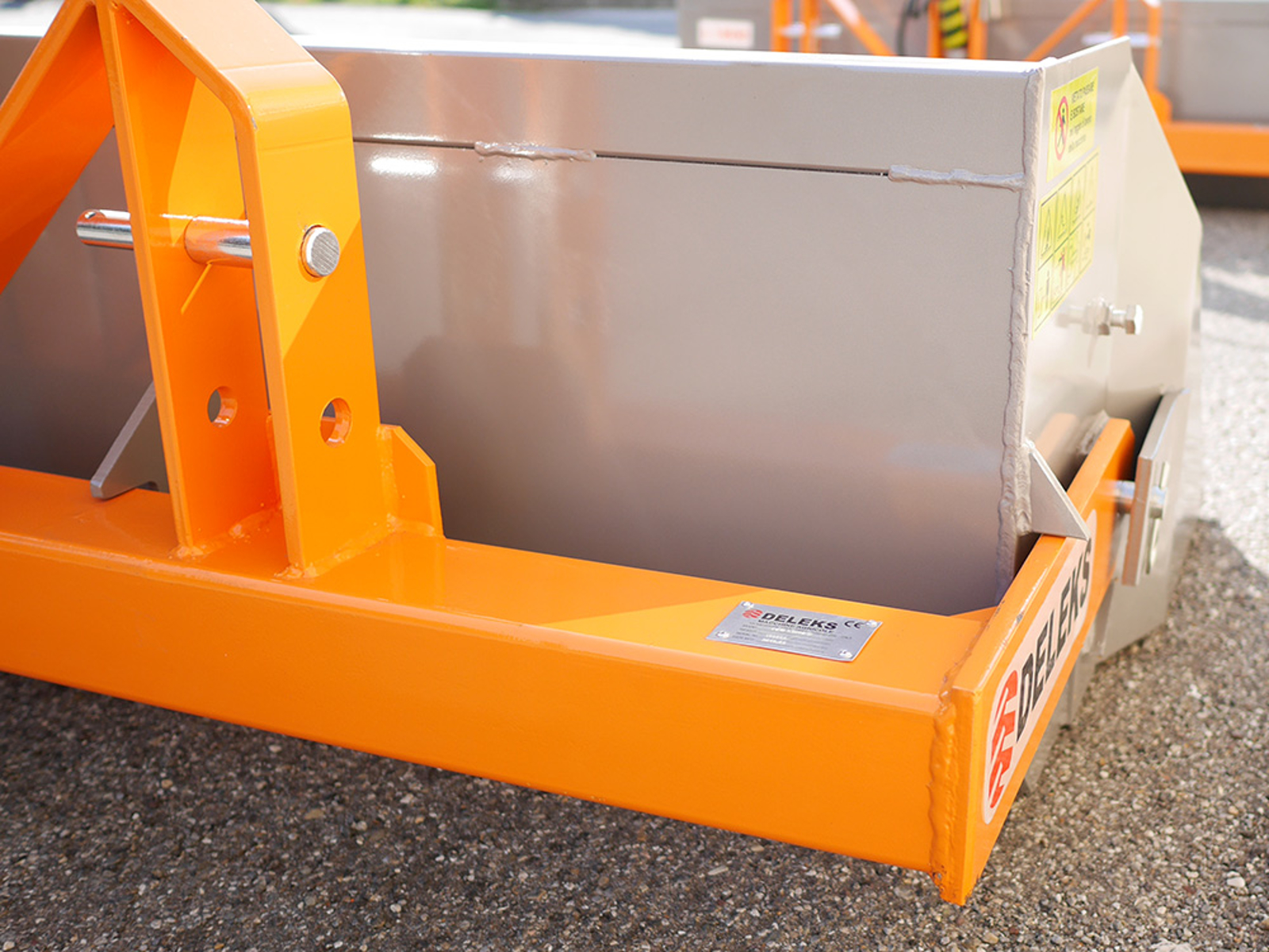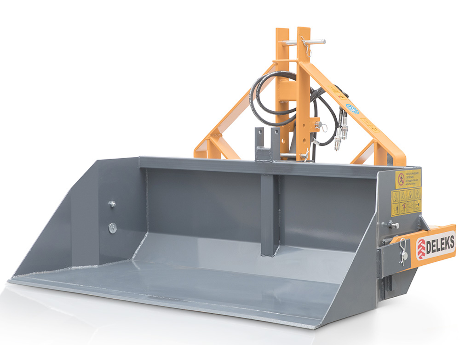 CLOSEHydraulic Transport Box 160cm DELEKS® for tractors - Heavy design allows loading up to 700kg - hydraulic tipping system - 1.0 cm hardened steel base.