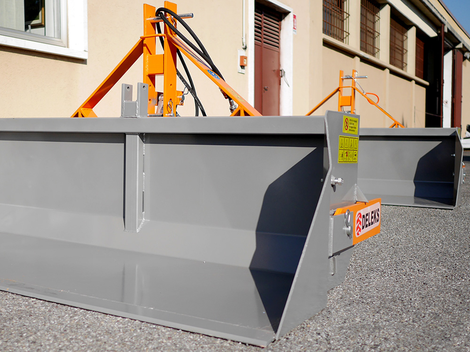 Thanks to the hydraulic tipping system, the box can be tilted to any angle, so it can be used as a shovel or for scattering material.