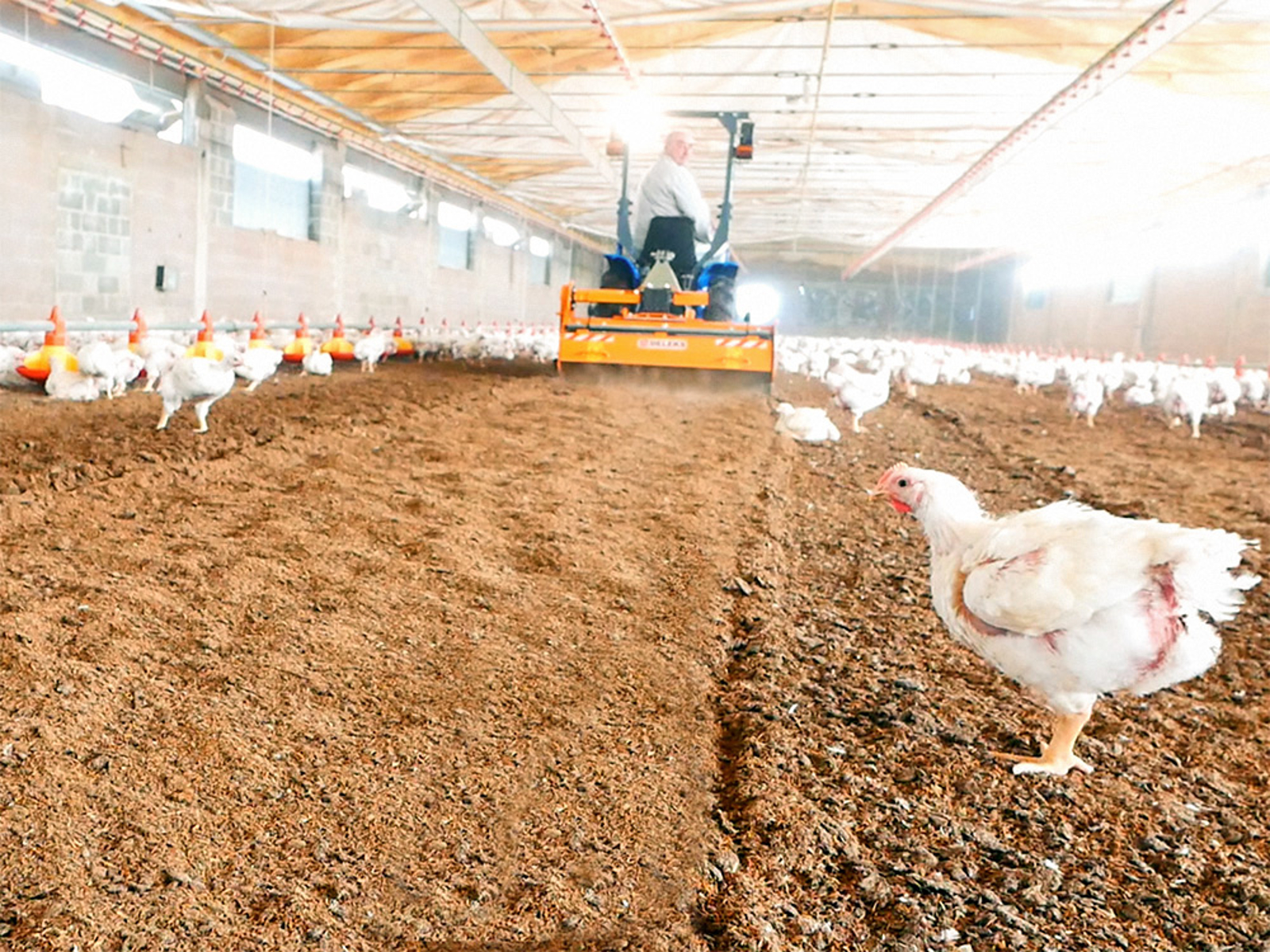 The machines hoes mix and turn all the layers of the litter and distribute the dry chips on the surface.