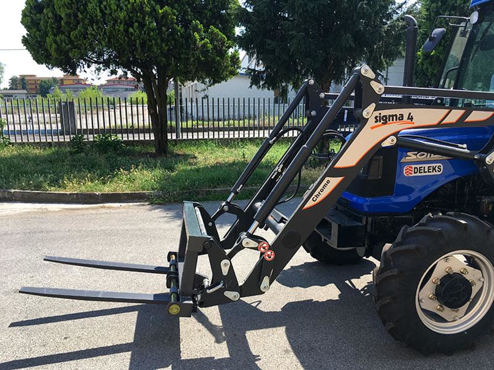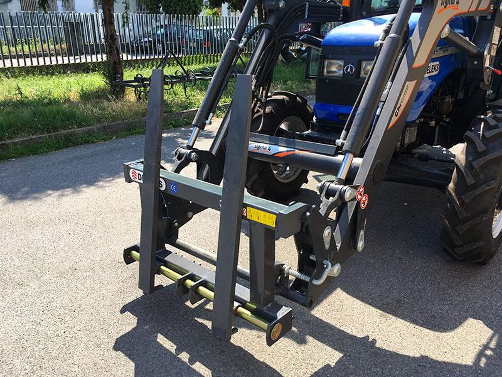 D-700-E Palettengabel zum Laden und Transportieren von Palettenware. Maximale Hubkraft ca. 700 kg. Entworfen in besonders robuster Ausführung für die maximale Leistungsausnutzung für Frontlader. Mit Euroaufnahme . CE – Zertifizierung, 2 Jahre Garantie.