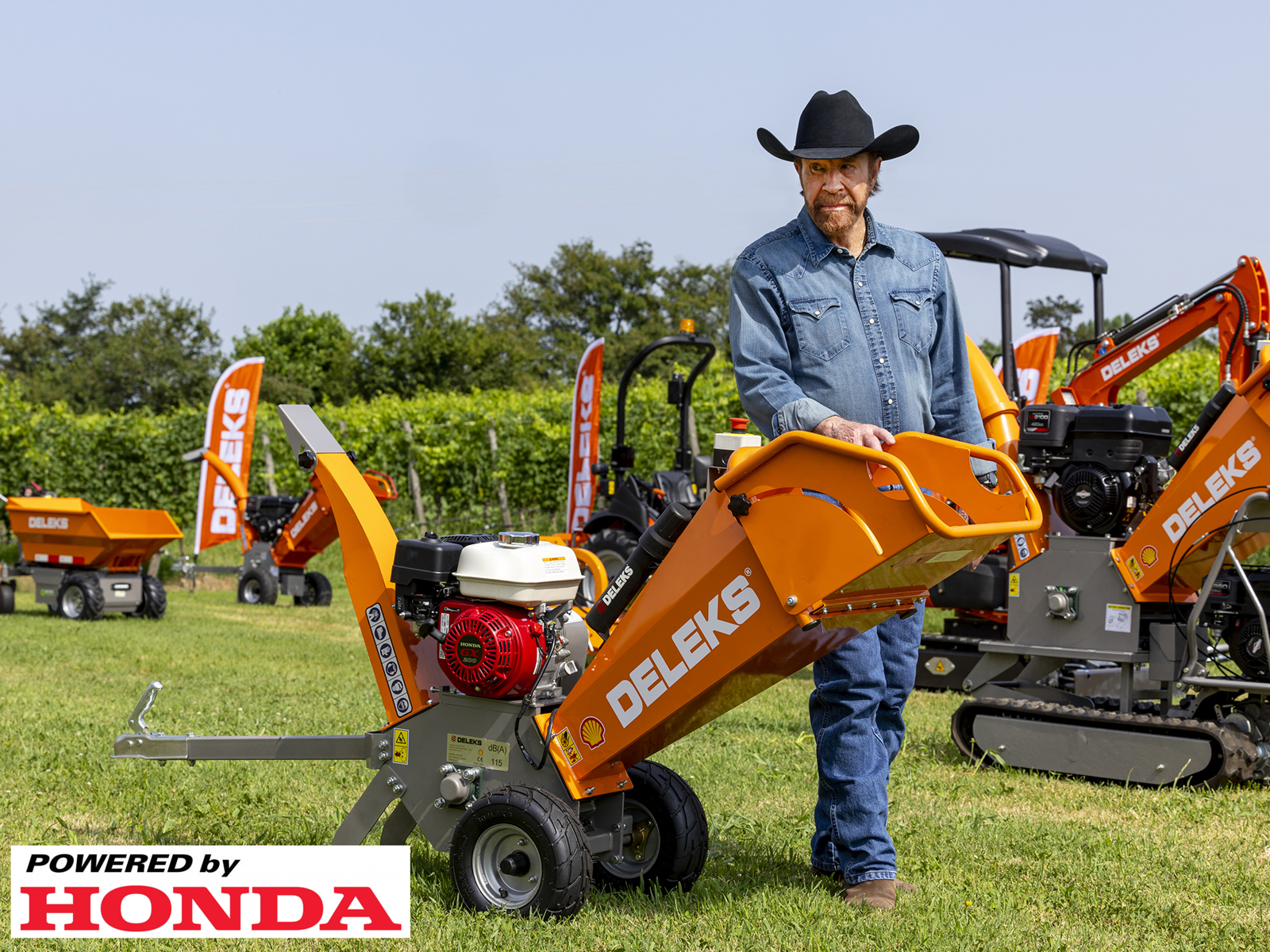 CLOSEProfessional Wood Chipper DELEKS® DK-500 with HONDA 6.0 Hp engine, 4 stroke gasoline engine. Reversible knives of special steel.
