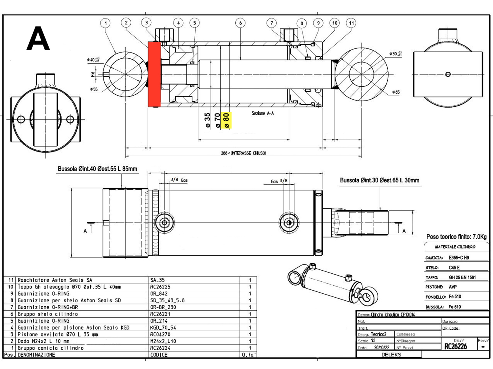 Pins in special material 42CrMo4 of ø30 and ø35 mm (see drawing B).