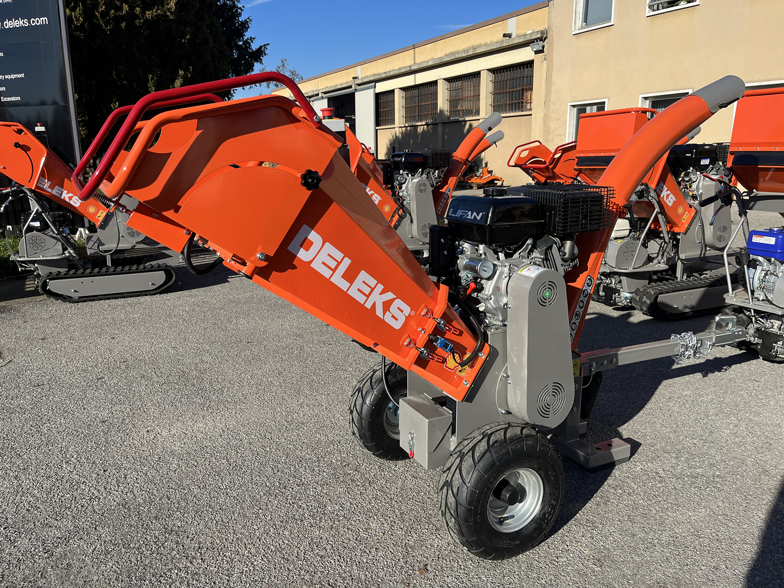 Professional Wood Chipper DELEKS DK-800-LF with 15 Hp engine, 4 stroke gasoline engine, E-Start.