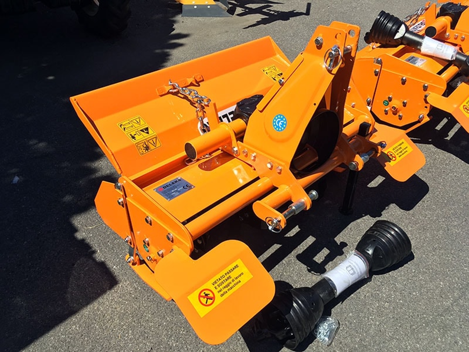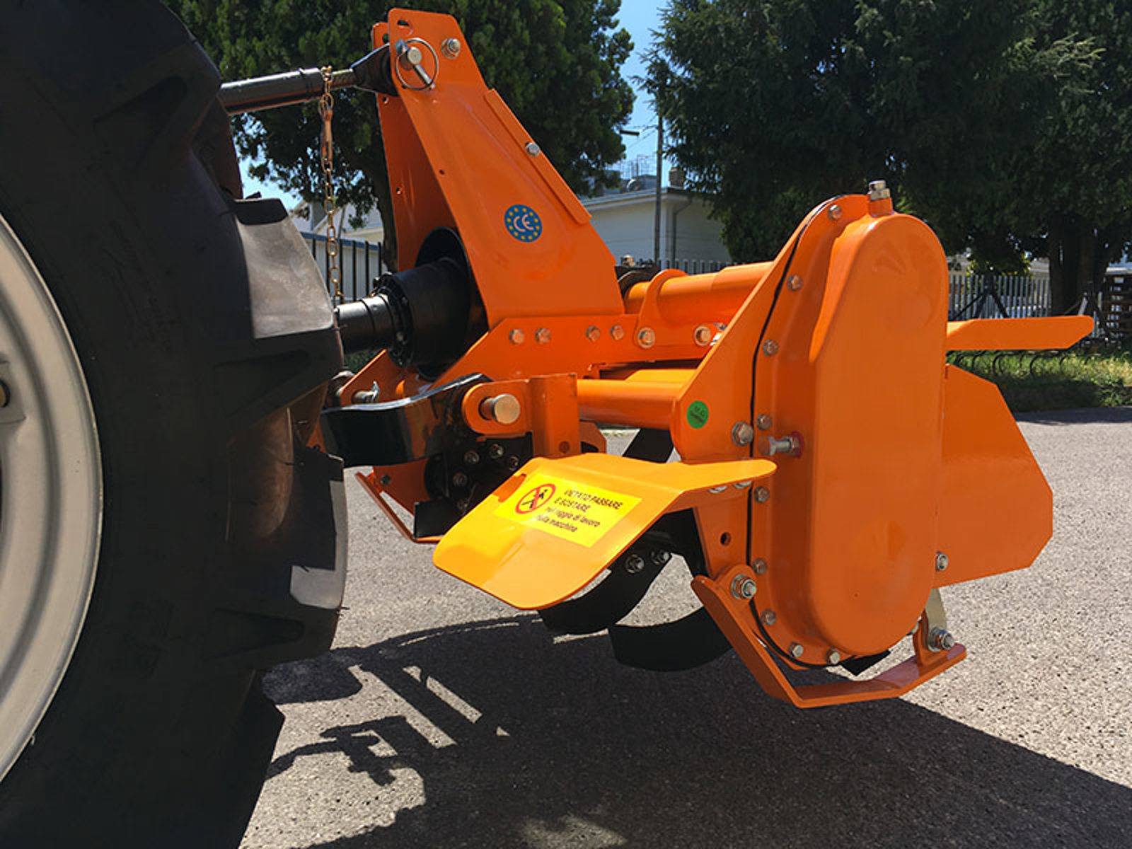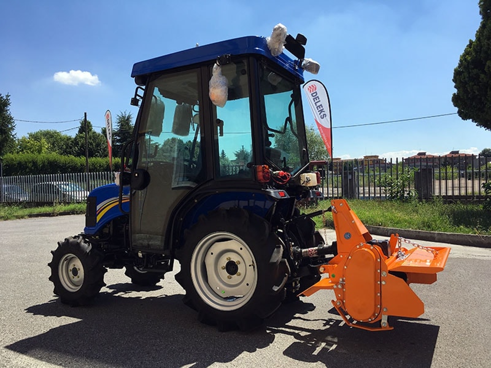 Light rotary tiller for tractors 18-35hp e.g Kubota, Iseki, Yanmar, Mahindra, Solis, Mitsubishi, Ferrari, Pasquali, New Holland Boomer 25-30, John Deere 2 Serie, etc. The tiller is attached to the tractor by the universal three point linkage. Not suitable for lifting quick couplings.