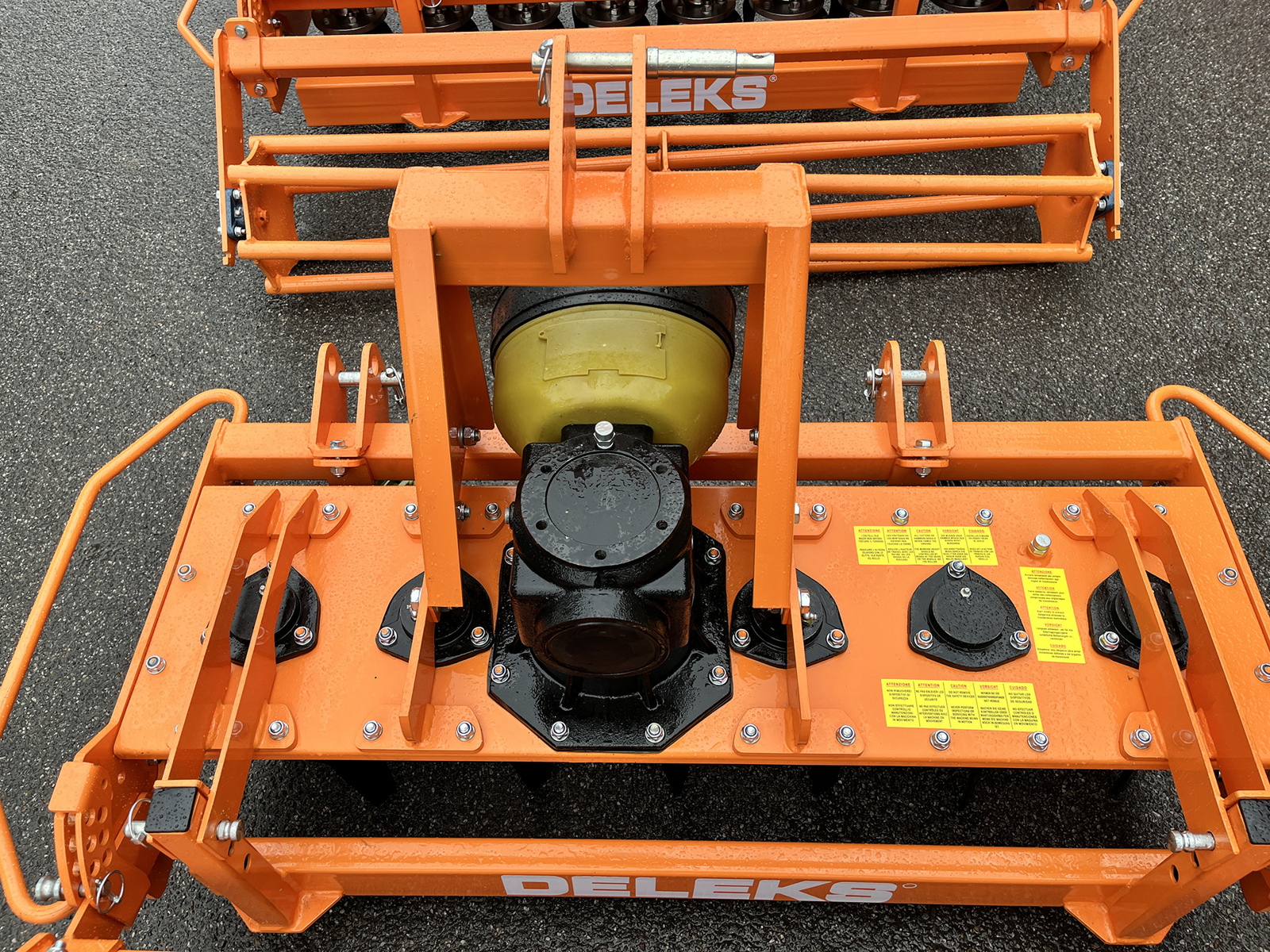 DELEKS® Power Harrow 125cm for tractors from 19 to 37 kW (25-50 HP), equipped with standard rear cage roller (grit roller available as an optional) and single speed gearbox for P.T.O. 540 r.p.m.