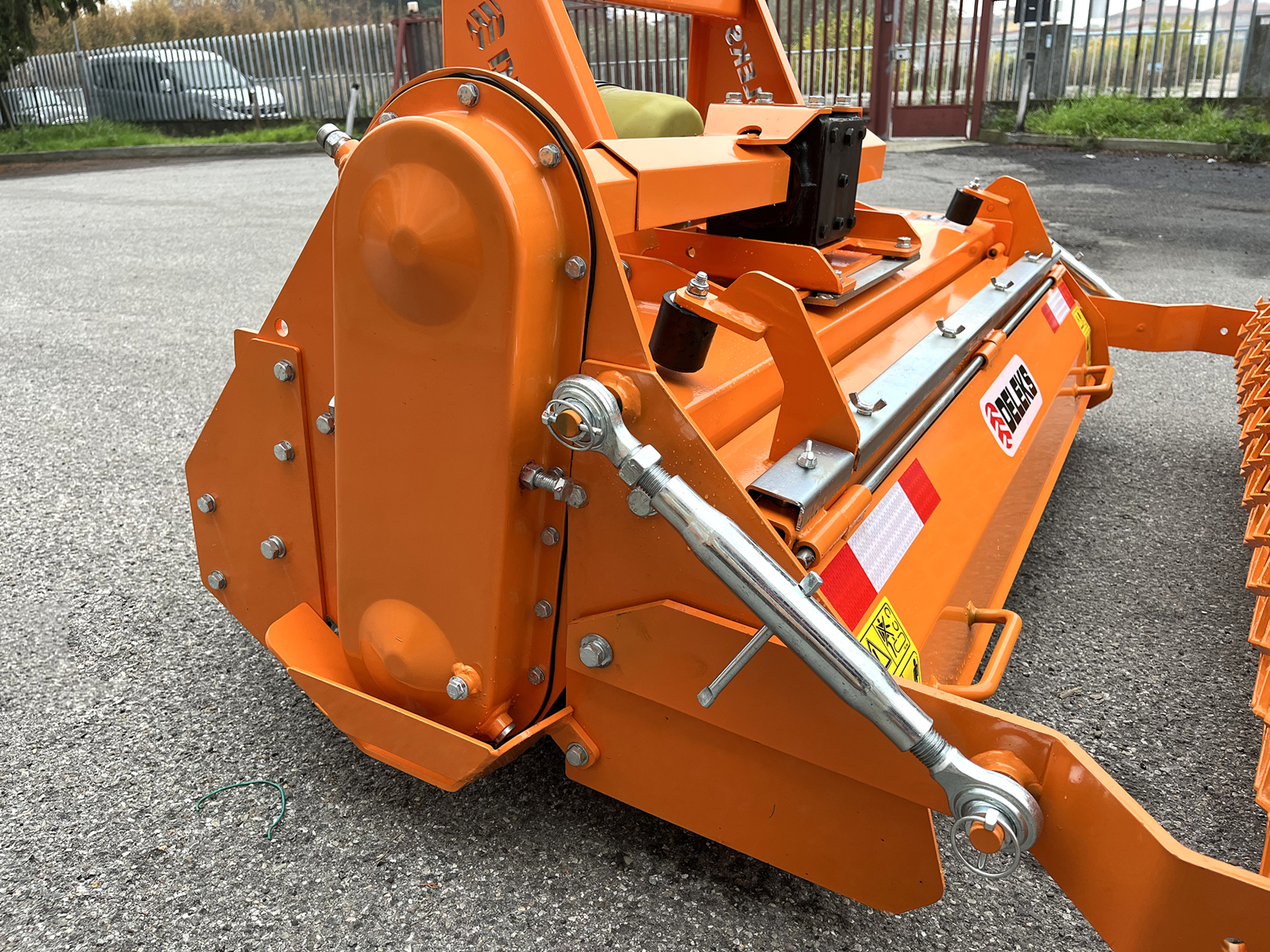 In einem einzigen Arbeitsgang wird der Ackerboden für die Saat vorbereitet. Überwiegender Einsatz im Garten – und Landschaftsbau. Geeignet für Traktoren mit Reifen oder Gleiskufen von 30– 50 PS wie z.Bsp. New Holland Boomer 30-40, John Deere Serie 3, Carraro Tigre, Valpadana, Kubota B, SAME Solaris und Frutteto, Lamborghini Ego 45, Iseky, Steyr, Gudbrod, Iseki, Yanmar, uvm. Universelle 3-Punktaufnahme der Kategorie 1 (Bolzenaufnahme 19-22 mm). CE- Zertifizierung, 2 Jahre Garantie.